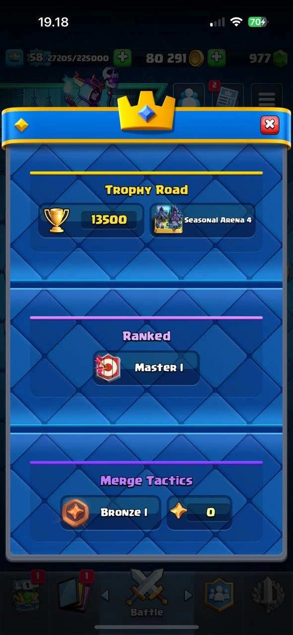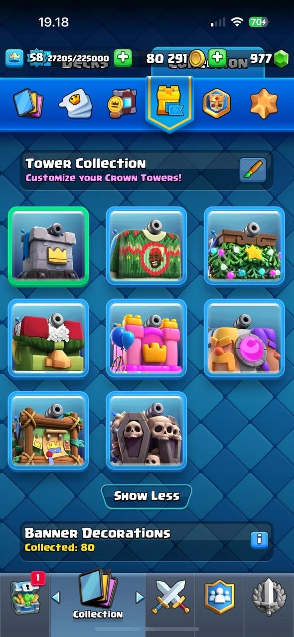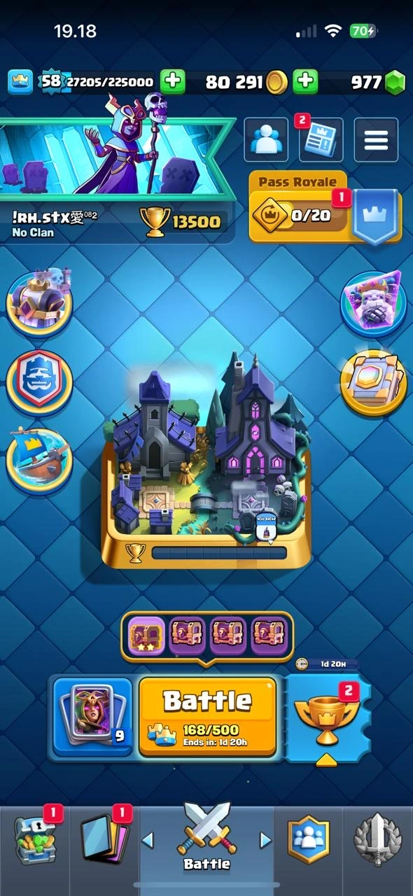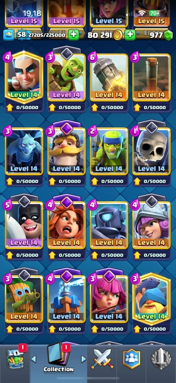 CR XP 58🔥KT15🔥16 Elite🔥45 Max Card🔥18 Evo🔥95 emotes🔥7 Skins Tower🔥13500 Trophiess🔥Acces Full🔥Cheapest and Safe Account