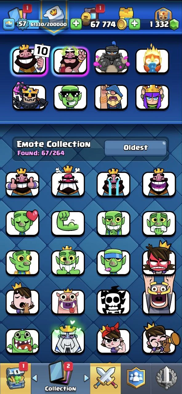 EMPEROR KING✨ KT 15 🔱 LVL 57 🏆 CUPS[9000] ✨ MAX CARDS [66] ✨ ELITE [9] ✨ EVO [4] ✨ LVL 14 [57] ✨ EMOTES [67] 🔱 CARDS [117] ✨ 10000% SAFE
