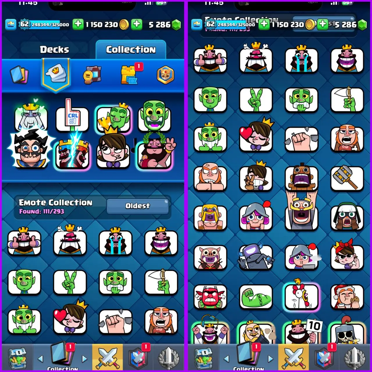 [ FESTIVAL SELL] 🔥[ 50% OFF 😀] 🔥 CR 62 EXP 🔥 RAREST EMOTE SET 🔥 GOBLIN TROPHY KISSING 🔥 ULTIMATE CHAMPION 🏆 GOBLIN SMILLING EMOTE 🔥 32 ELITE CARDS 🔥 105 MAX CARDS 🔥 111 EMOTES 🔥 1.5M GOLD 🥇 5K.GEMS 🥇 CHEAPEST IN MARKET
