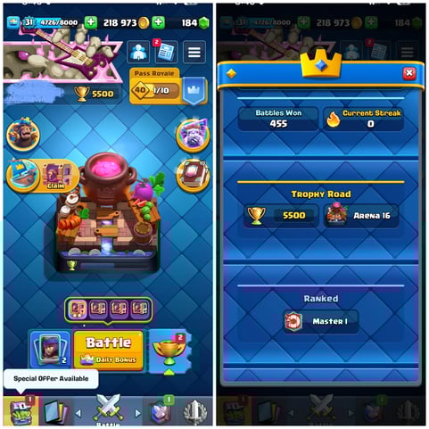 Free BS Account With CR purchase ๐ 6802 Trophies ๐| Level 39 ๐ฅ | King Tower 13 ๐ | Arena 18 โ๏ธ | Emote 34 ๐ Cards 116 ๐ฅ Instant Delivery โ