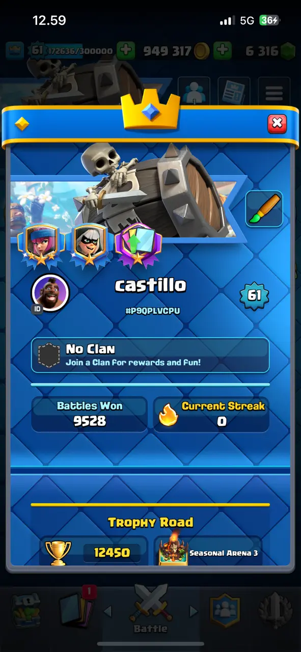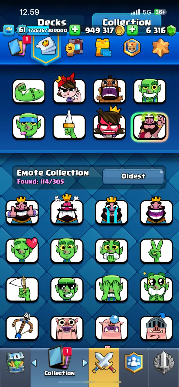 🔥 -Goblin Kissing Emotes- 🔥 CR Lv.61 🔥 6 Years Played 🔥 Change Name ON 🔥 Seasonal Arena 3 🔥 12450 Trophies 🔥 KT 15 🔥 14 Evo Card 🔥 104 Max Cards & 27 Elite🔥 114 Emotes 🔥 18 Tower Skins 🔥 Full Acces & Guaranteed 🔥 [F2341] 🔥
