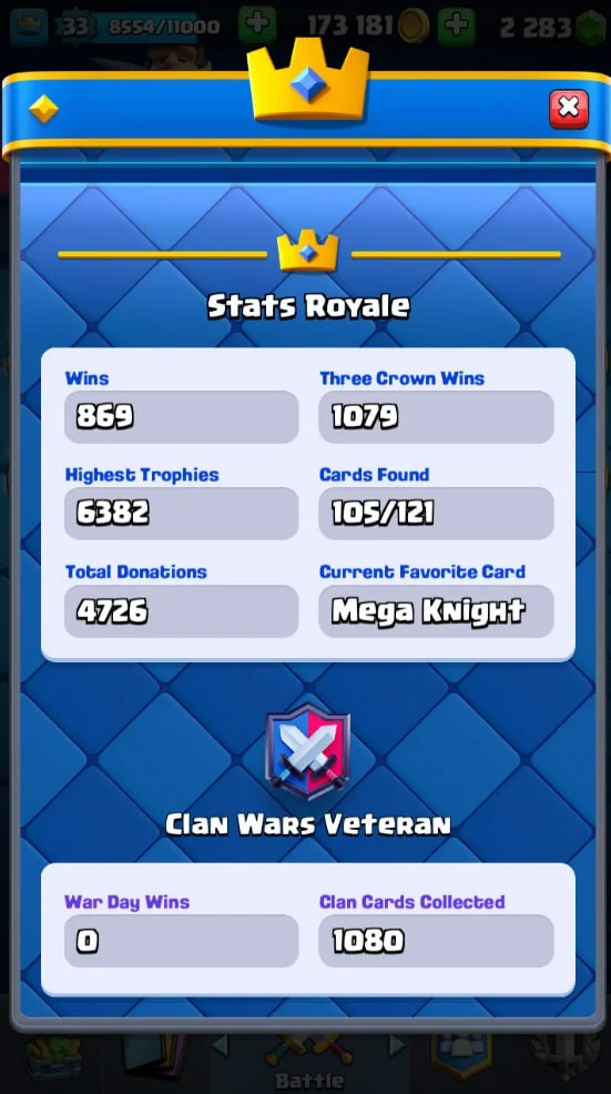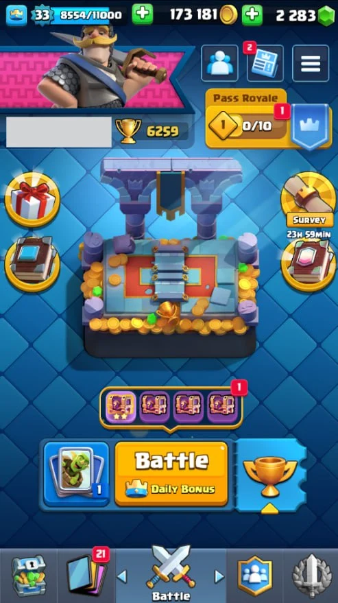 ๐ KT 11 ๐ 6259 Trophy ๐ 33 LVL ๐ 105 Cards ๐ 17 Emotes ๐ 2283 Gems ๐ 173 k Gold ๐ + Clash of Clans TH 11 ๐