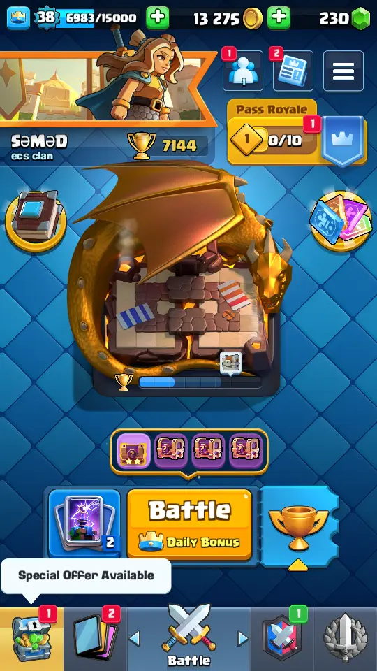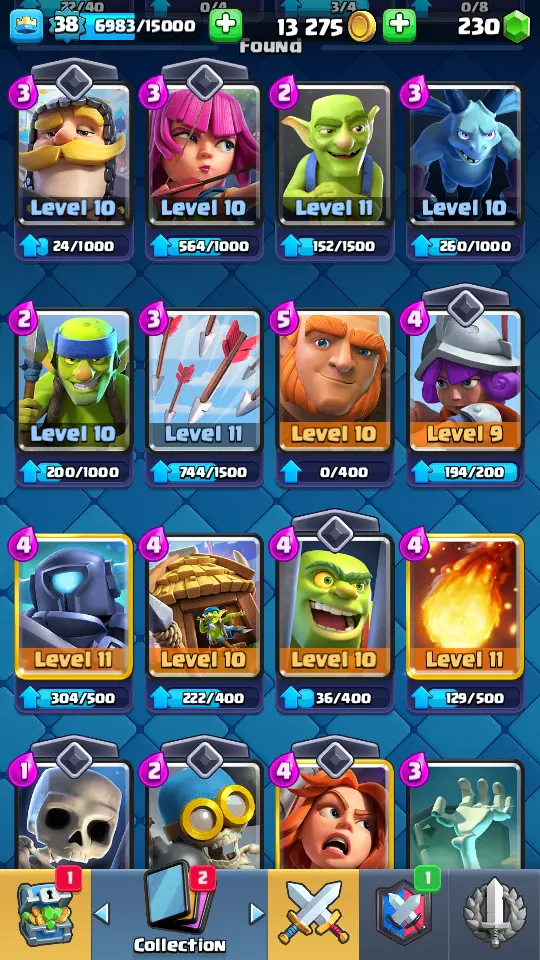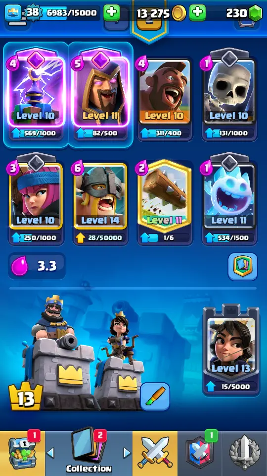 KT 13 🔹 LEVEL 38 🔹 ARENA 19 🔹 7,140 TROPHIES 🔹 117 CARDS 🔹 20 LEGENDARY 🔹 3 EVO 🔹 13K GOLD 🔹 230 GEMS 🔹 ANDROID & iOS 🔹 ZFR33