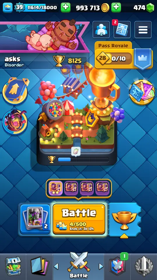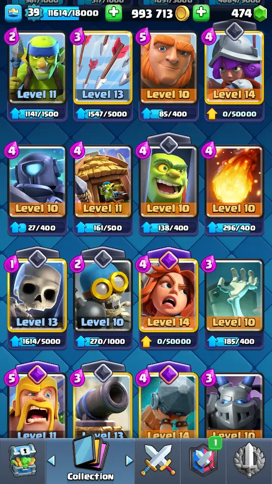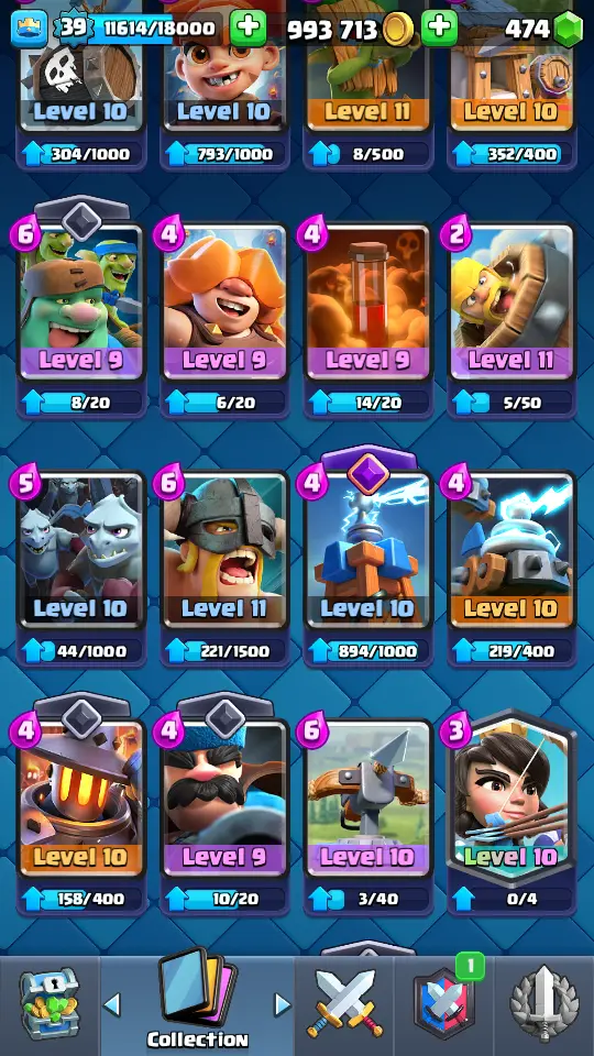 KT 13 🏮 LEVEL 39 🏮 ARENA 21 🏮 8,100 TROPHIES 🏮 120 CARDS 🏮 20 LEGENDARY 🏮 9 EVO 🏮 993K GOLD 🏮 474 GEMS 🏮 ANDROID & iOS🏮FCR28