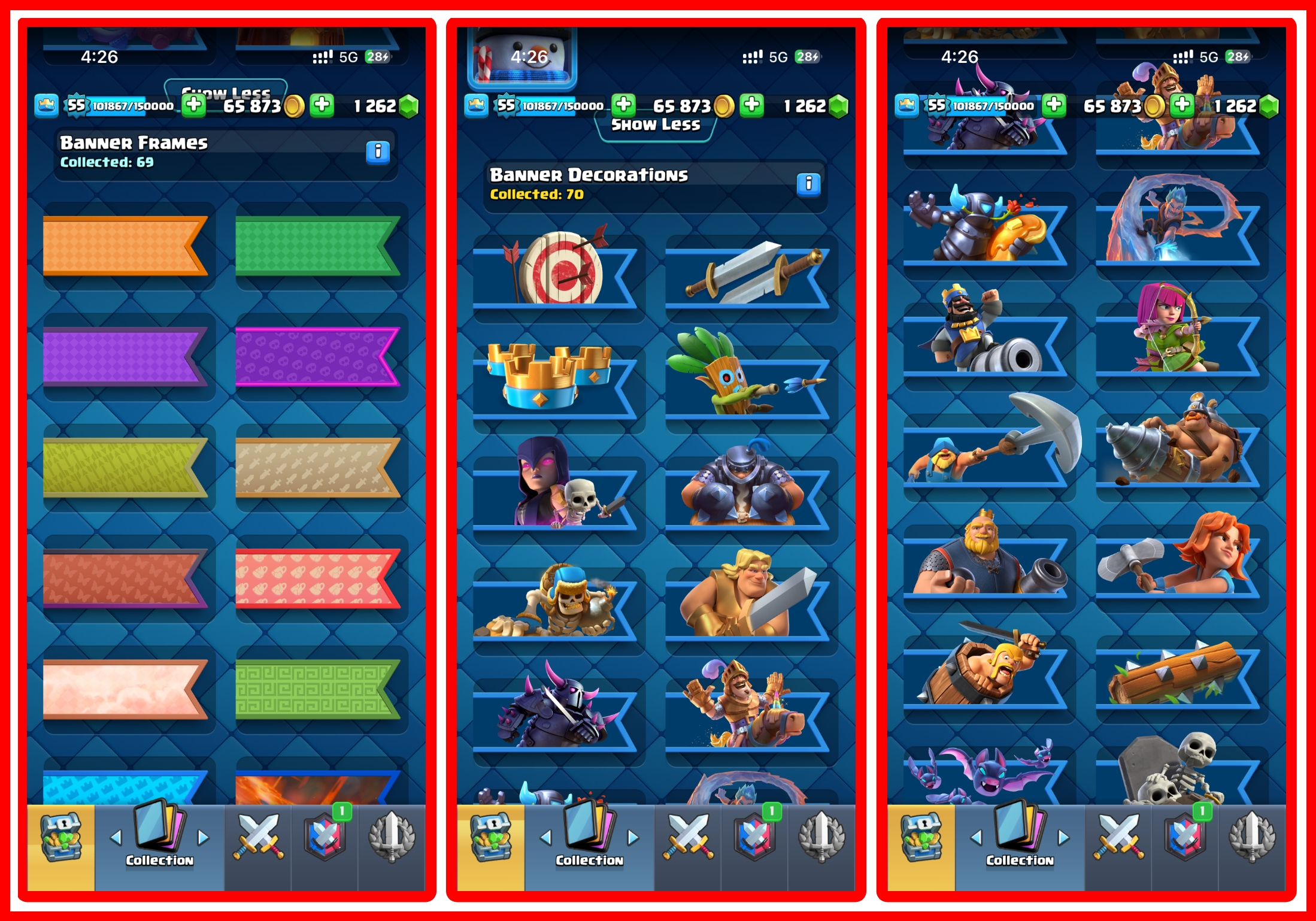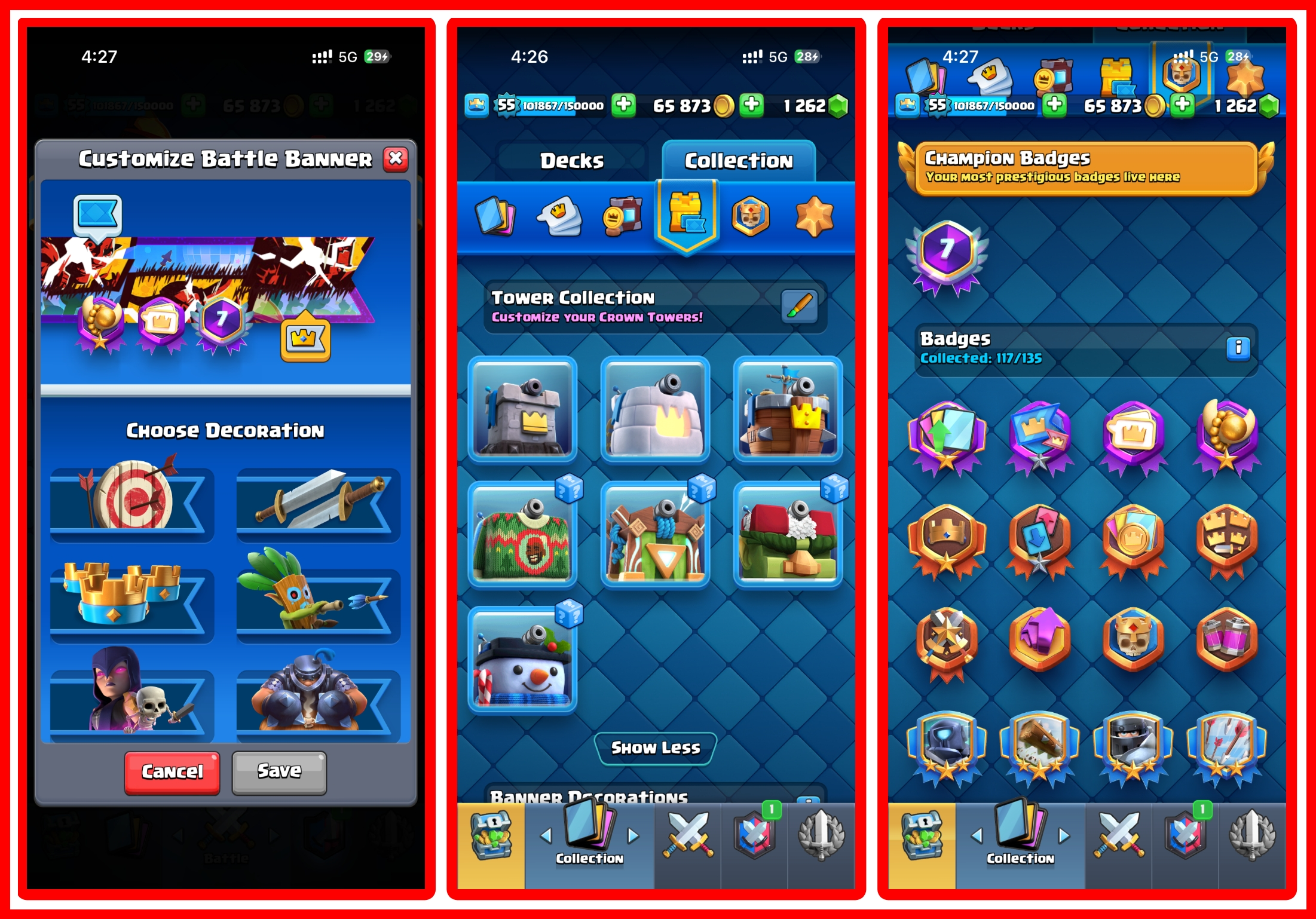 KT ⸱ 15 ( Level 55 ) ⚡️10k Trophies 🏆 7 Years old 😱 66 Max Cards 🔥 5 Elite 🔥2 Evo 🔥 Name Change Available 😍73 Emotes & 70 Banner Deco 🔥Instant Delivery