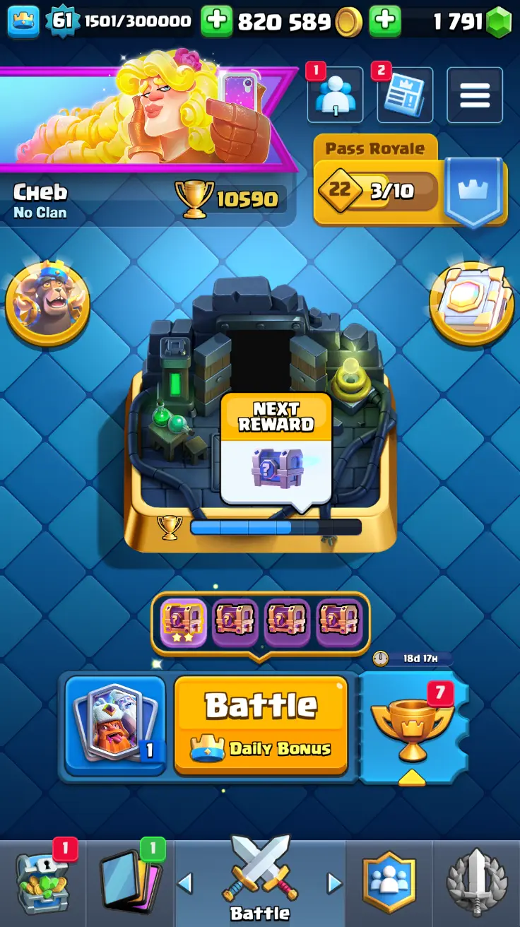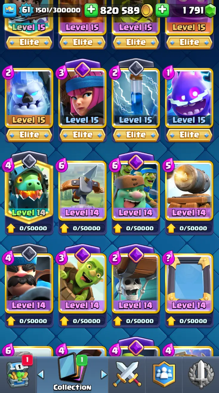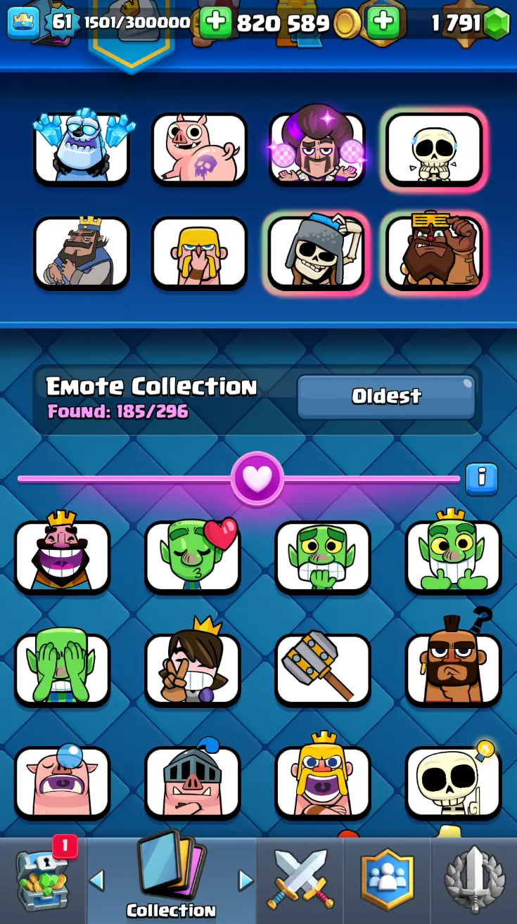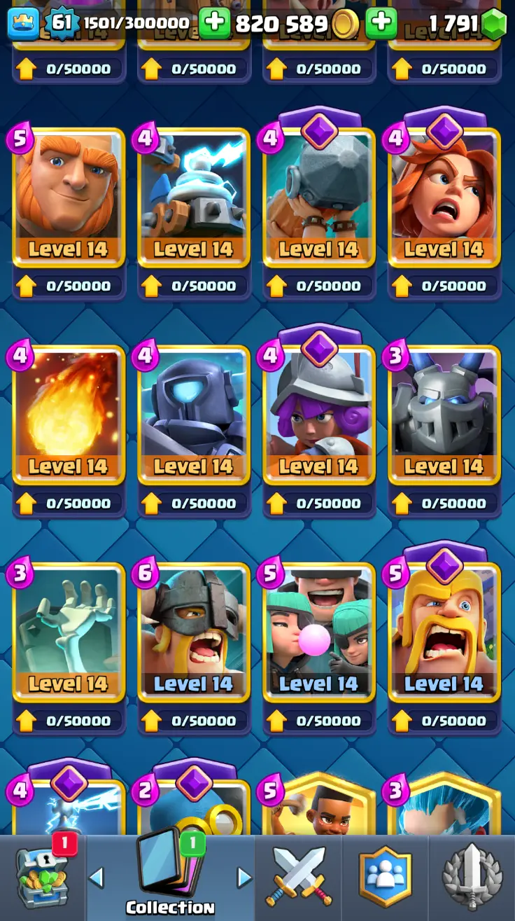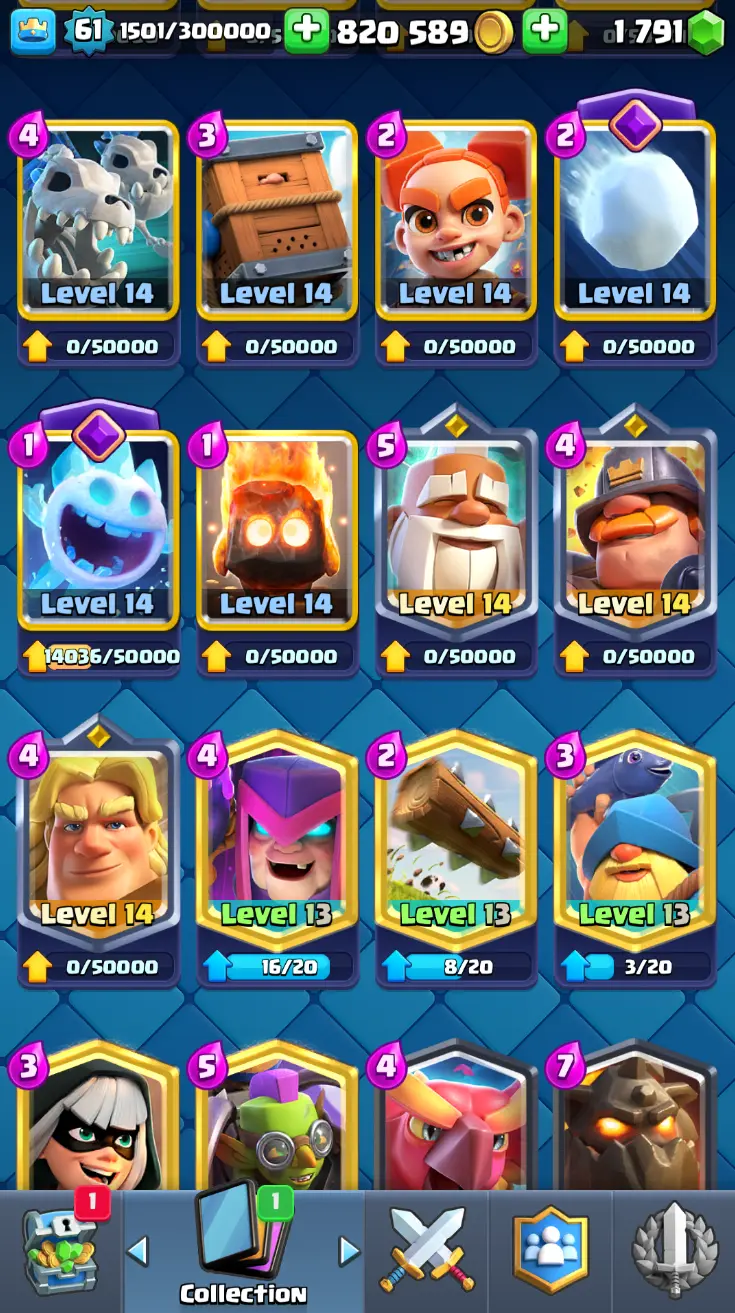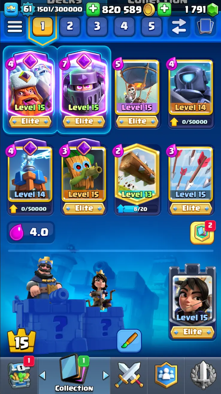 ◀️ KT 15 ▶️ LEVEL 61 🤩 10590 TROPHIES 🏆 24 ELITE CARD 🙀 78 MAX CARD 😎 29 EVO ☠️ 185 EMOTE 😍 35 SKIN 👽 121 CARDS 💳 820k GOLD 💰 1791 GEMS 💎 RL146