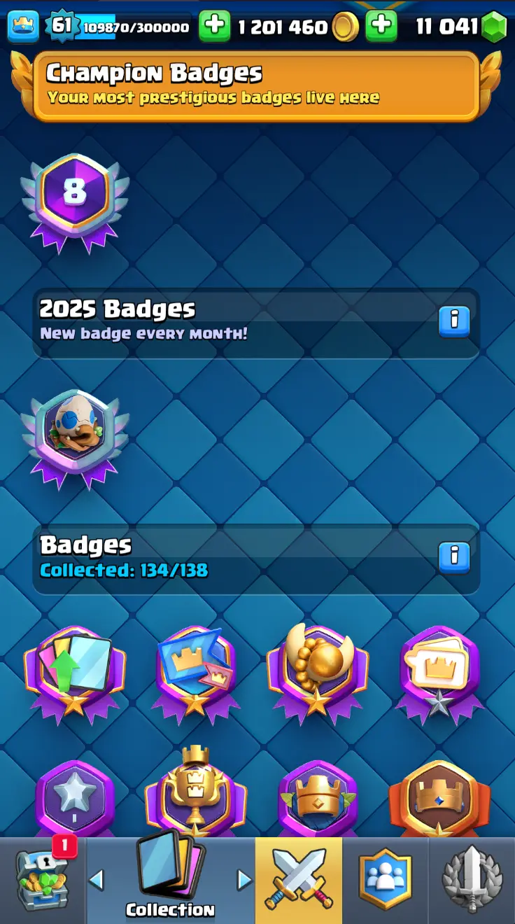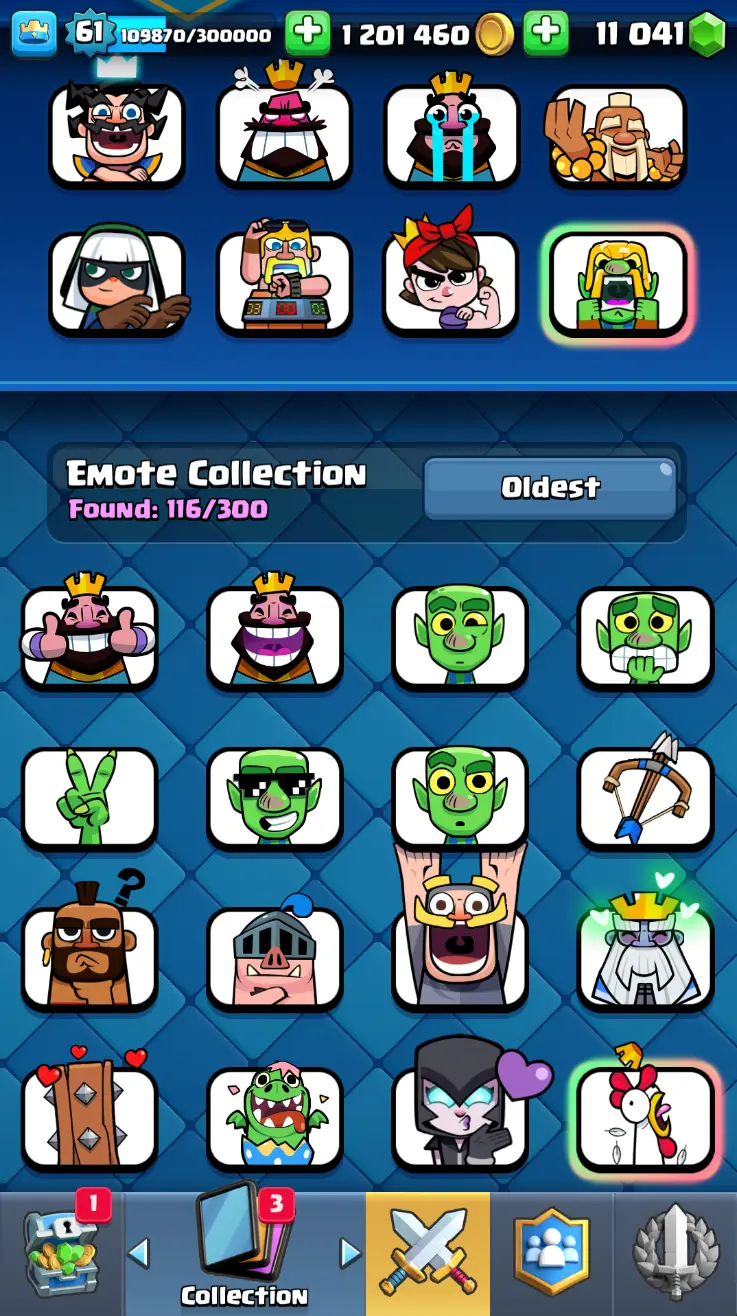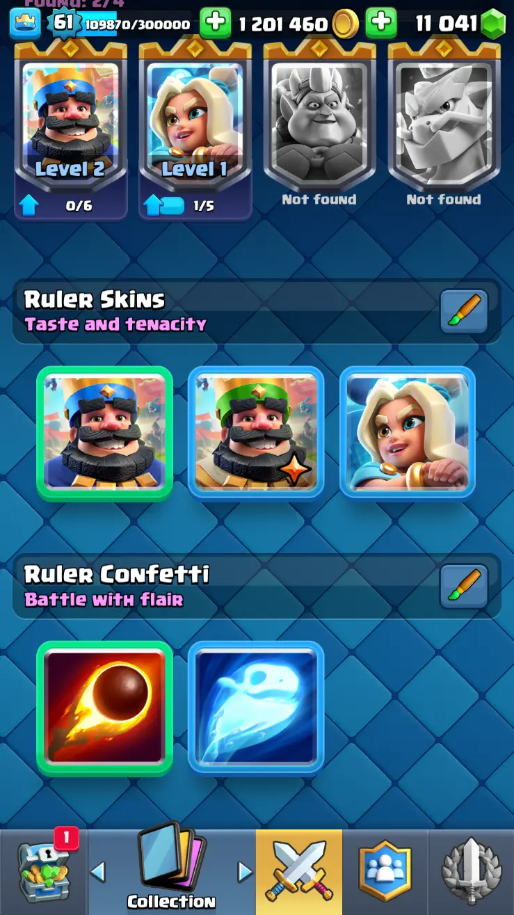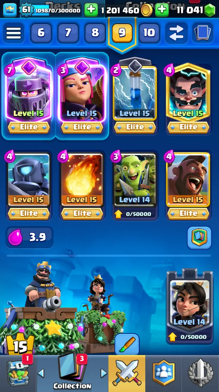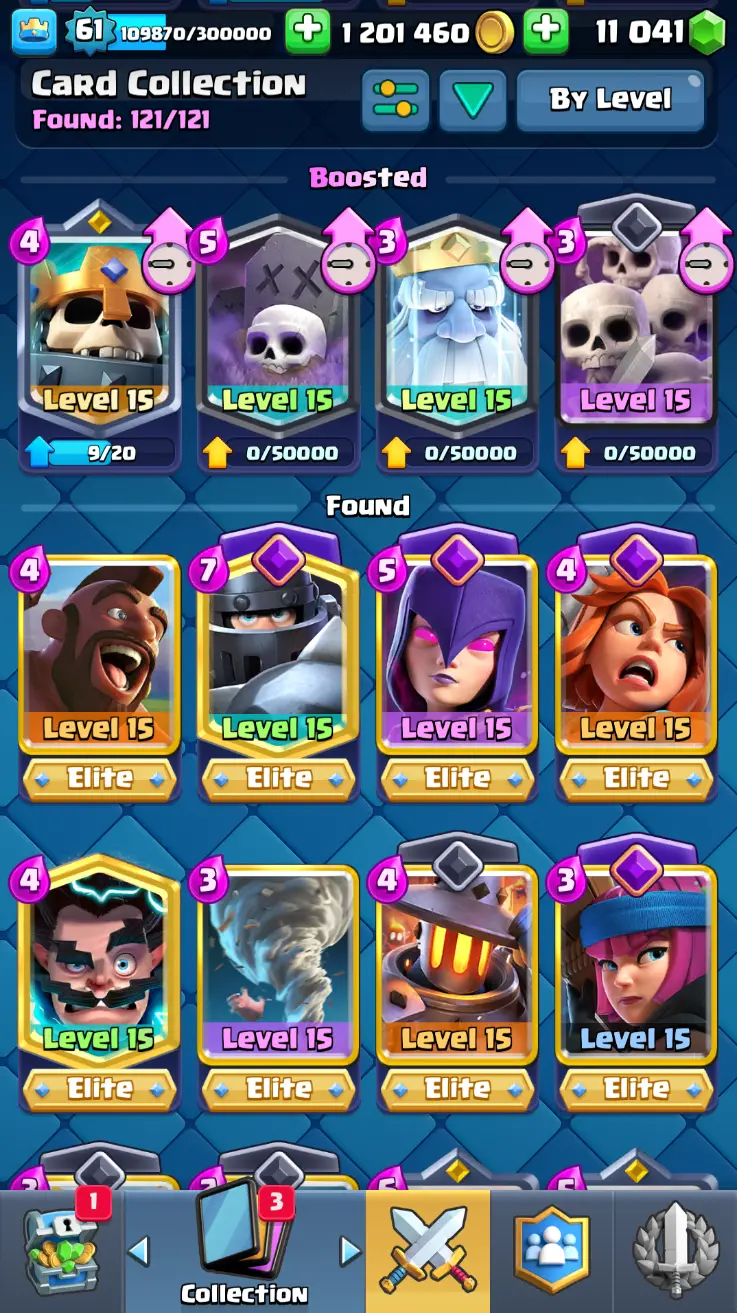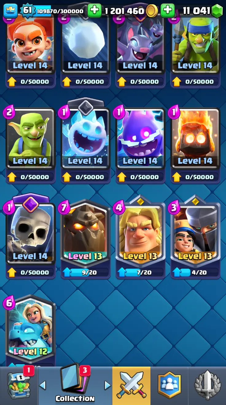 ◀️ KT 15 ▶️ LEVEL 61 🤩 13205 TROPHIES 🏆 27 ELITE CARD 🙀 89 MAX CARD 😎 18 EVO ☠️ 116 EMOTE 😍 9 SKIN 👽 121 CARDS 💳 1.2m GOLD 💰 11041 GEMS 💎 RL143