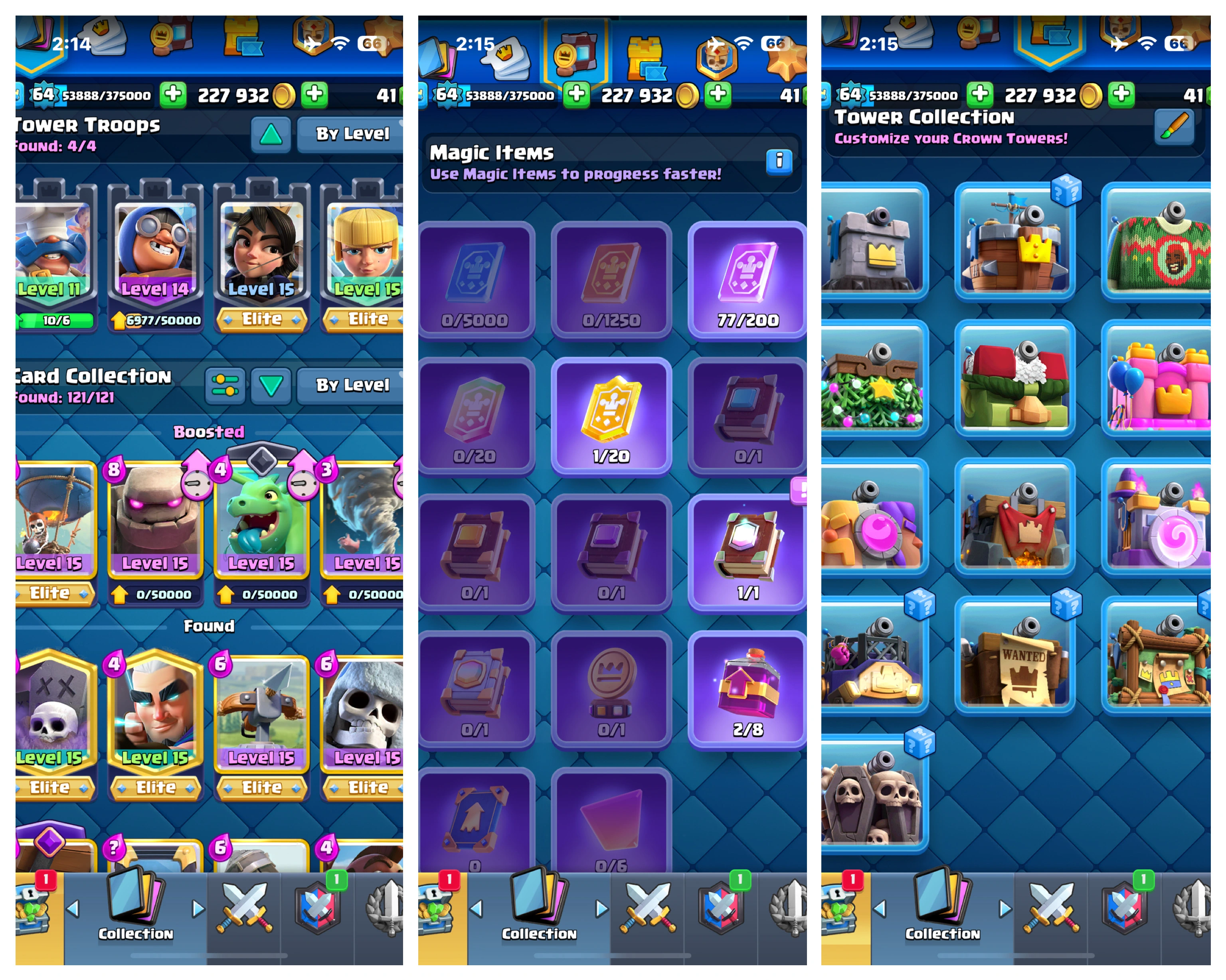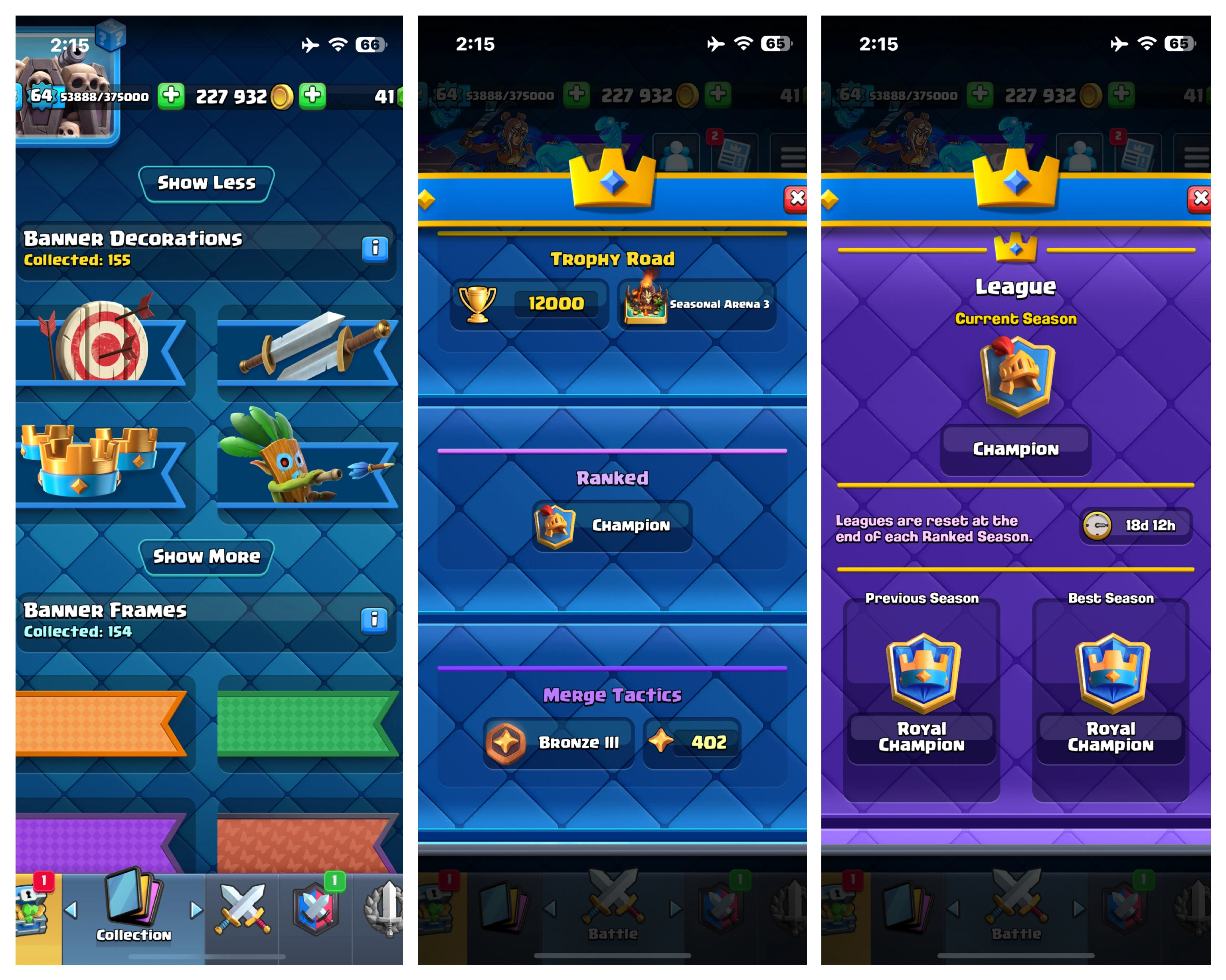 KT 15 (LVL.64)✅ EVO-21 ✅ 108 CARDS MAX ✅ 46 CARDS ELITE ✅ EMOTES-158 ✅SKINS-13✅ 12K TROPHY ✅ CHAMPION LEAGUE ✅ 07 LEGEND & 04 CHAMPION LEAGUE ✅ UNDER 1K RANKED ✅ANDROID & IOS