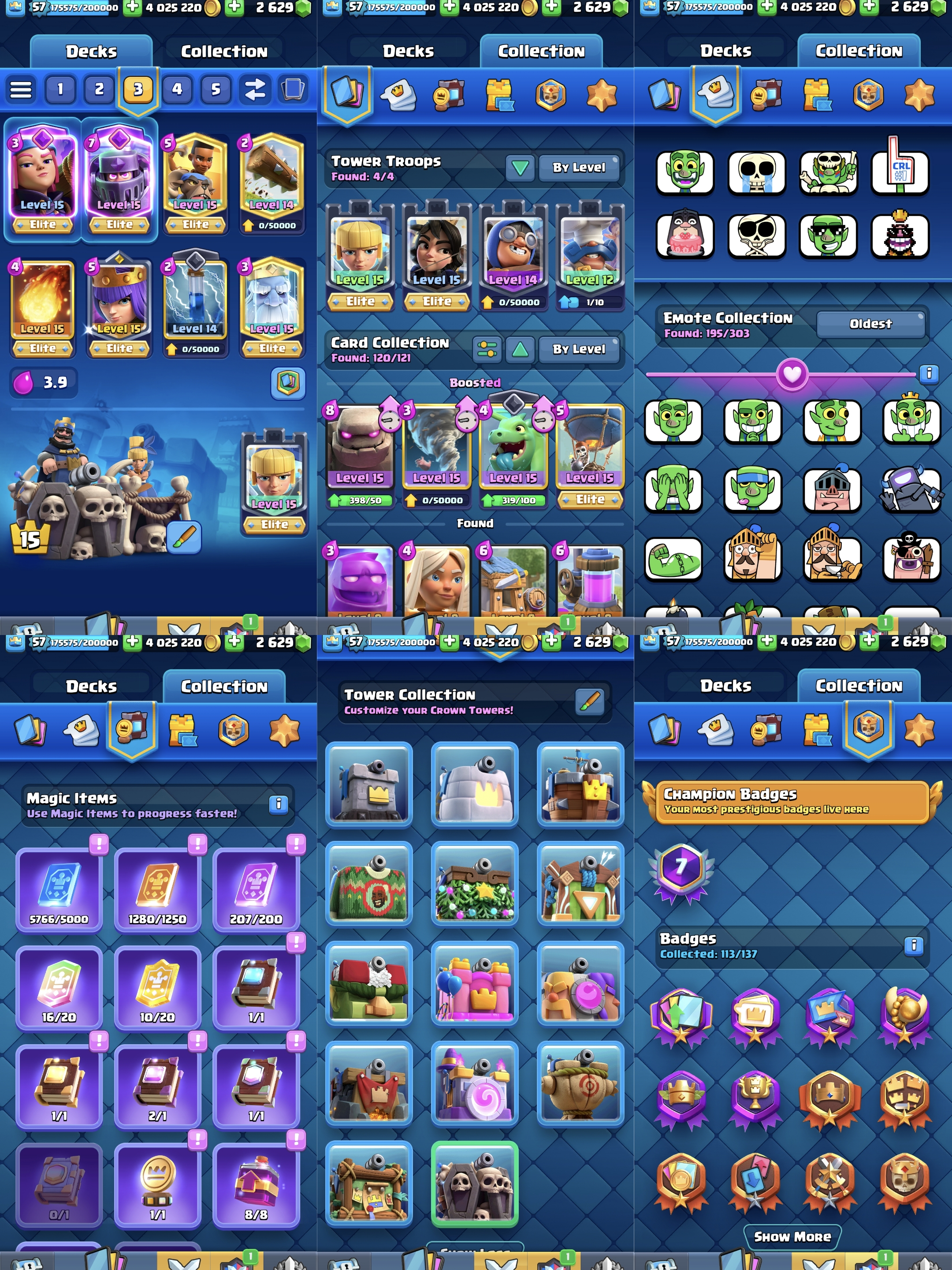 KT15 LVL57 | 120 CARD | 12 ELITE | 46 MAXED | SEASONAL ARENA 1 | 13 EVOLUTION | 10500 TROPHY | MAGIC ITEMS FULL | 195 RARE EMOTE | FULL ACCESSORIES