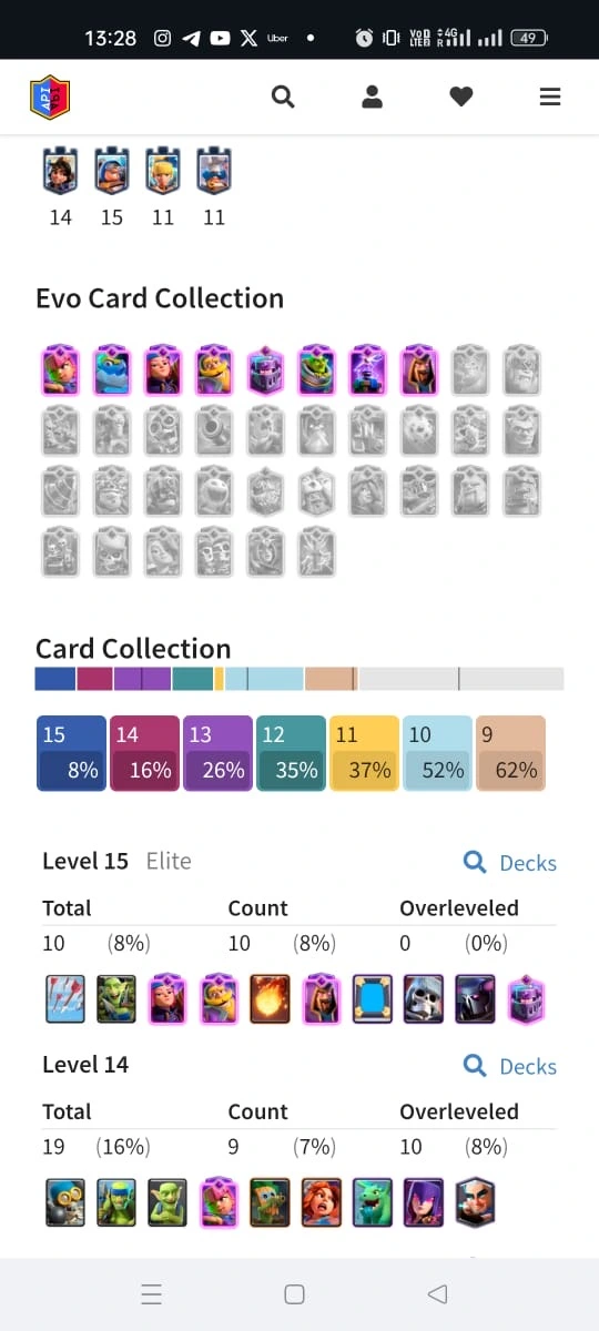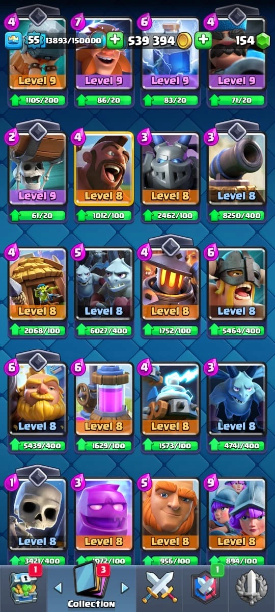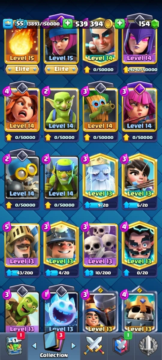 🎯LEVEL 55 | 🏆15029 TROPHY | 🏅LEAGUE 2 | 💎19 MAX CARDS | ⚔️10 ELITE | ⚡8 EVO