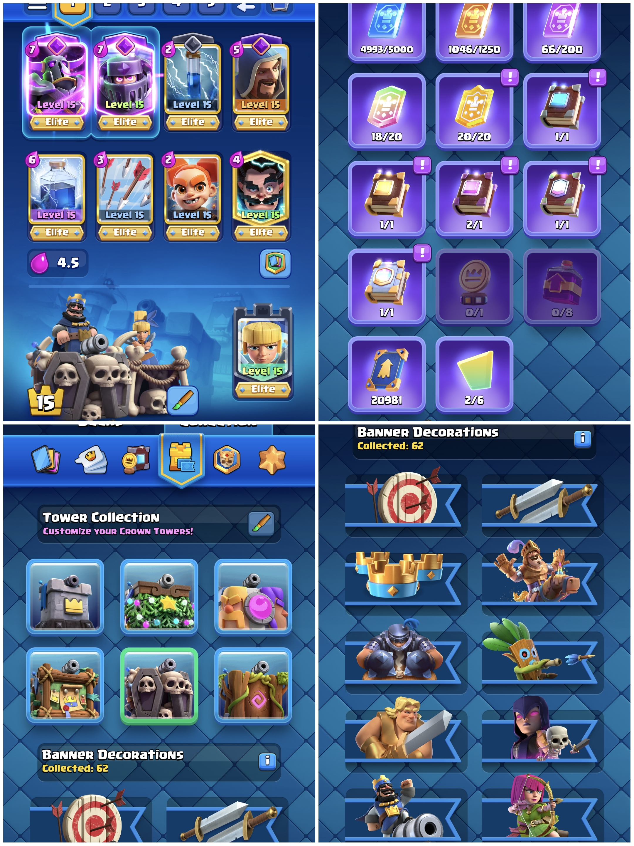 β¨[PREMIUM]β¨ [MEGA ACCOUNT]π₯ 12000+ TROPHIESπ 15 MAX CARDS (13 ELITE ) β¨ MAX KT 15π 13 EVO π XP 56 π SEASONAL ARENA 3 π° EXTRA TOWER SKINS π IOS AND ANDROID WORKING π INSTANT DELIVERY π