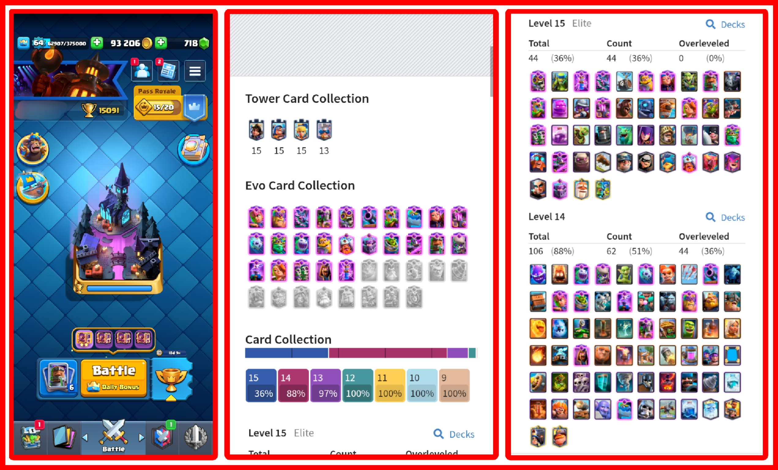 { RARE AF } 🔥 LVL 64 🏆 15K+ TROPHIES 👾 25+ EVOS ☠ ALL CARDS MAXED [ 44 ELITE CARDS ] 😍 165+ PREMIUM EMOTES | 25+ TOWER SKINS 🤝 SAFEST AND INSTANT DELIVERY!