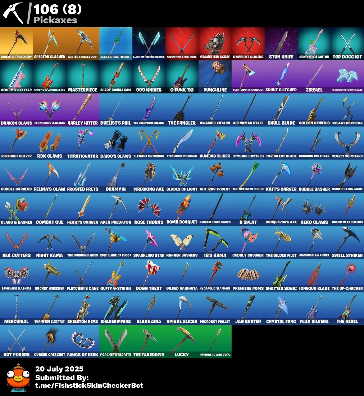 ๐ 102 skins ๐ฎ [PC/XBOX] ๐ Omegarok ๐ Spectra Knight โก Poseidon ๐ฆ Apprentice Evie ๐ซ Captain Phasma ๐ฎ Gwenpool ๐ 4400 VBucks ๐งฟ FTN143