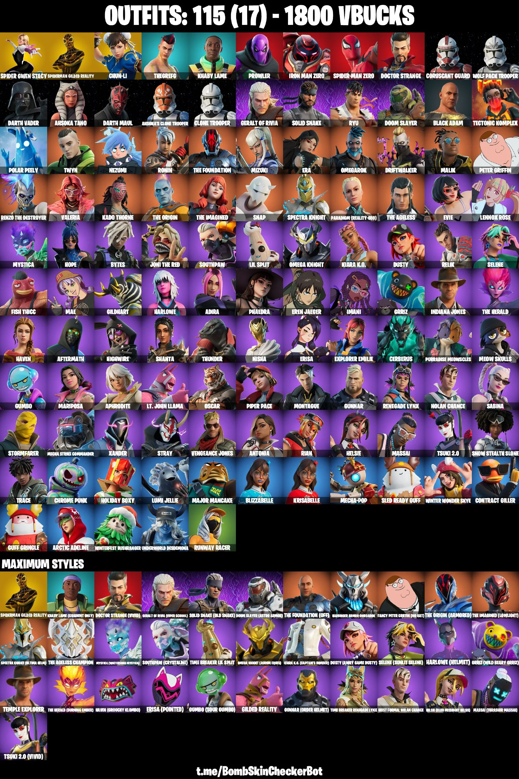 115 Skins| Spiderman Gilded Reality, Spidergwen Stacy, Chun Li, Iron Man Zero, Spiderman Zero, Star Wars Skins| Full Access