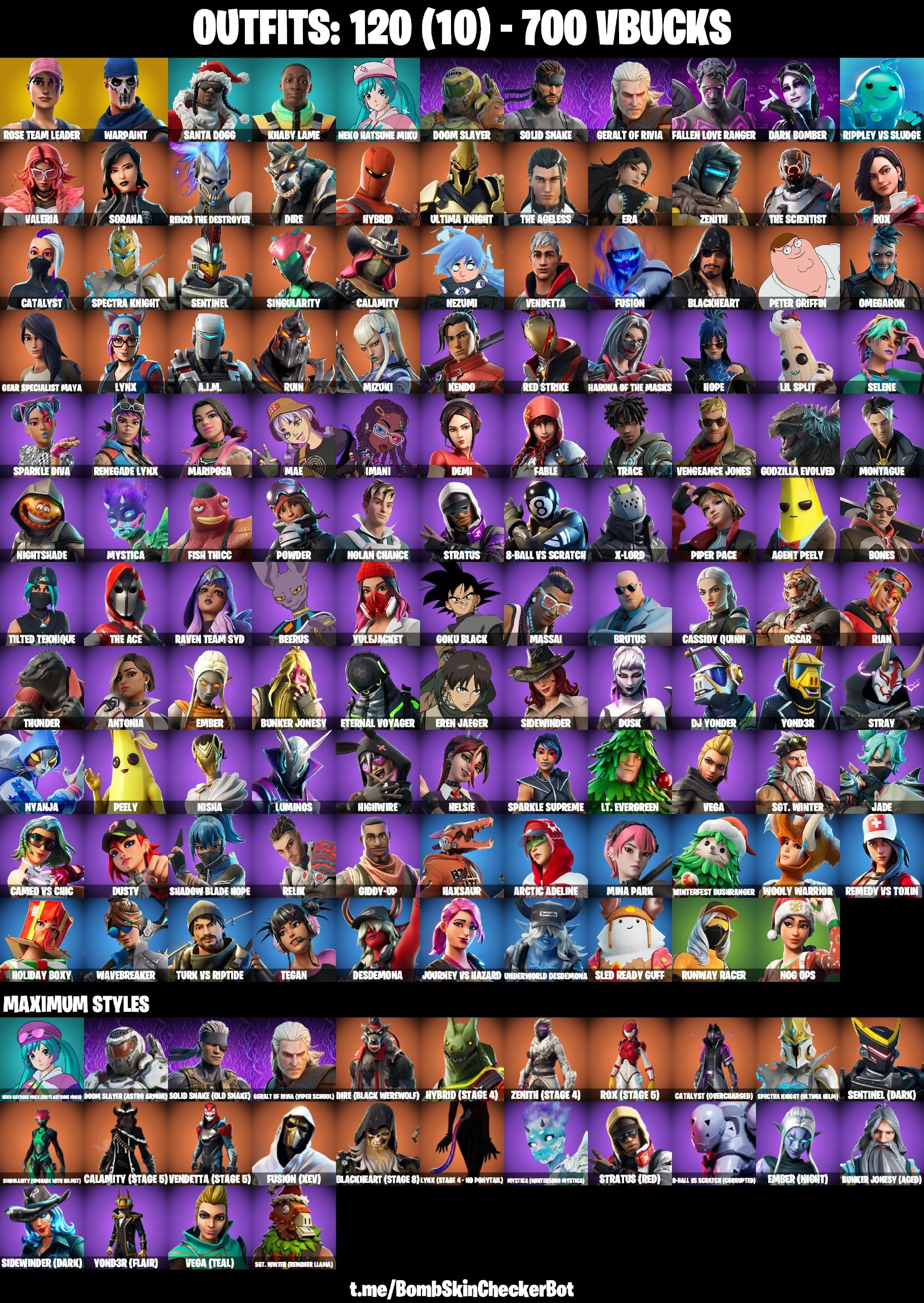 🔮120 Skins🔮 OG STW💎Take The Elf💎Rust Bucket💎Beerus💎Tegan💎Tilted Teknique💎Peely💎Dire💎DJ Yonder💎Vendetta💎Ember💎Eren Jaeger💎Khaby Lame💎Goku Black💎Doom Slaye