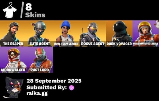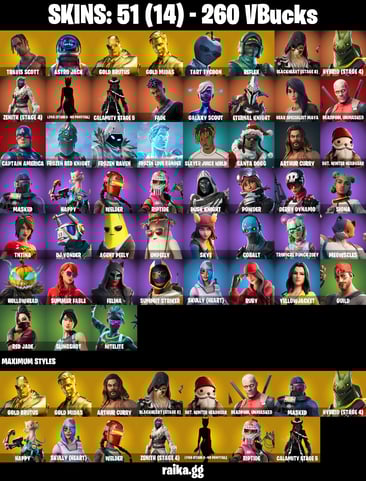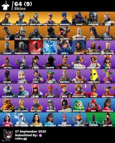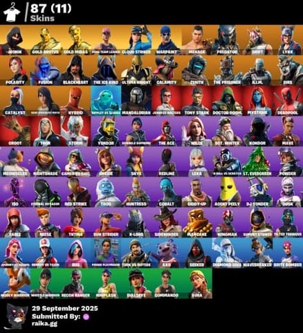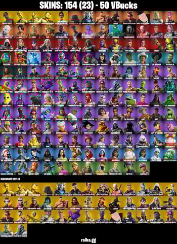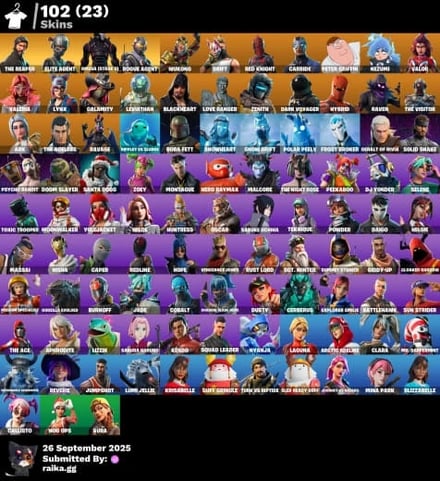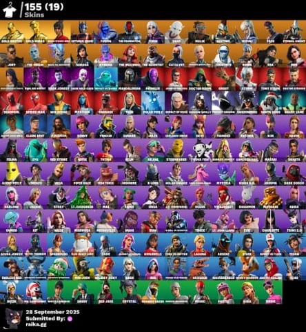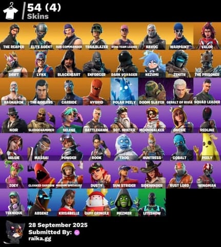 140 skins | John Wick | Son Goku | Spider-Man Zero | Subzero Cryptic | Dummy Supreme | Aurelian | Fancy Peter Griffin | Knight's Helm | Burning Ambition Valeria | Kalamadness | Combat Elite | Pastel Stryder | Harbinger Armor Omegarok | A1079