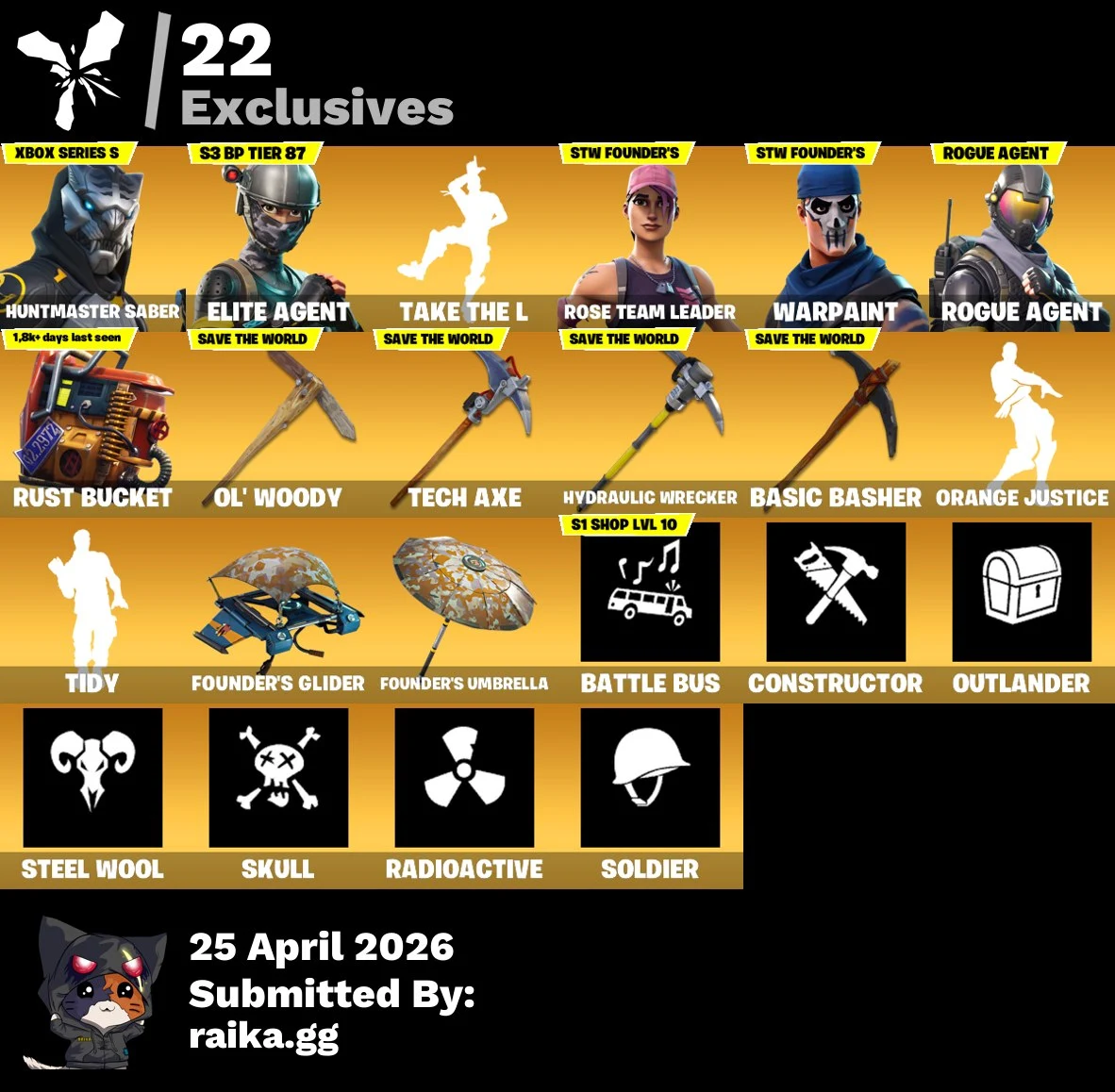 ⭐142 skins | OG STW | Huntmaster Saber | Take The L | Elite Agent | Rogue Agent ⭐