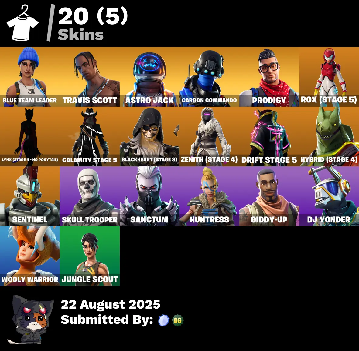 20 TOP SKINS [PC/PSN/XBOX] TRAVIS SCOTT ✅ SKULL TROOPER ✅ ASTRO JACK ✅ CARBON COMMANDO ✅ PRODIGY ✅ ROX ✅ DRIFT STAGE 5 ✅ HUNTRESS ✅ SENTINEL ✅ JUNGLE SCOUT