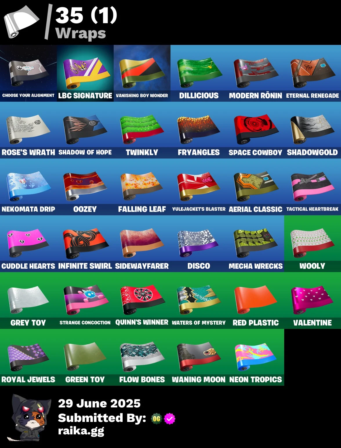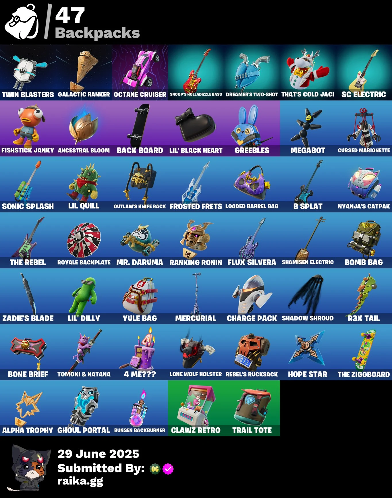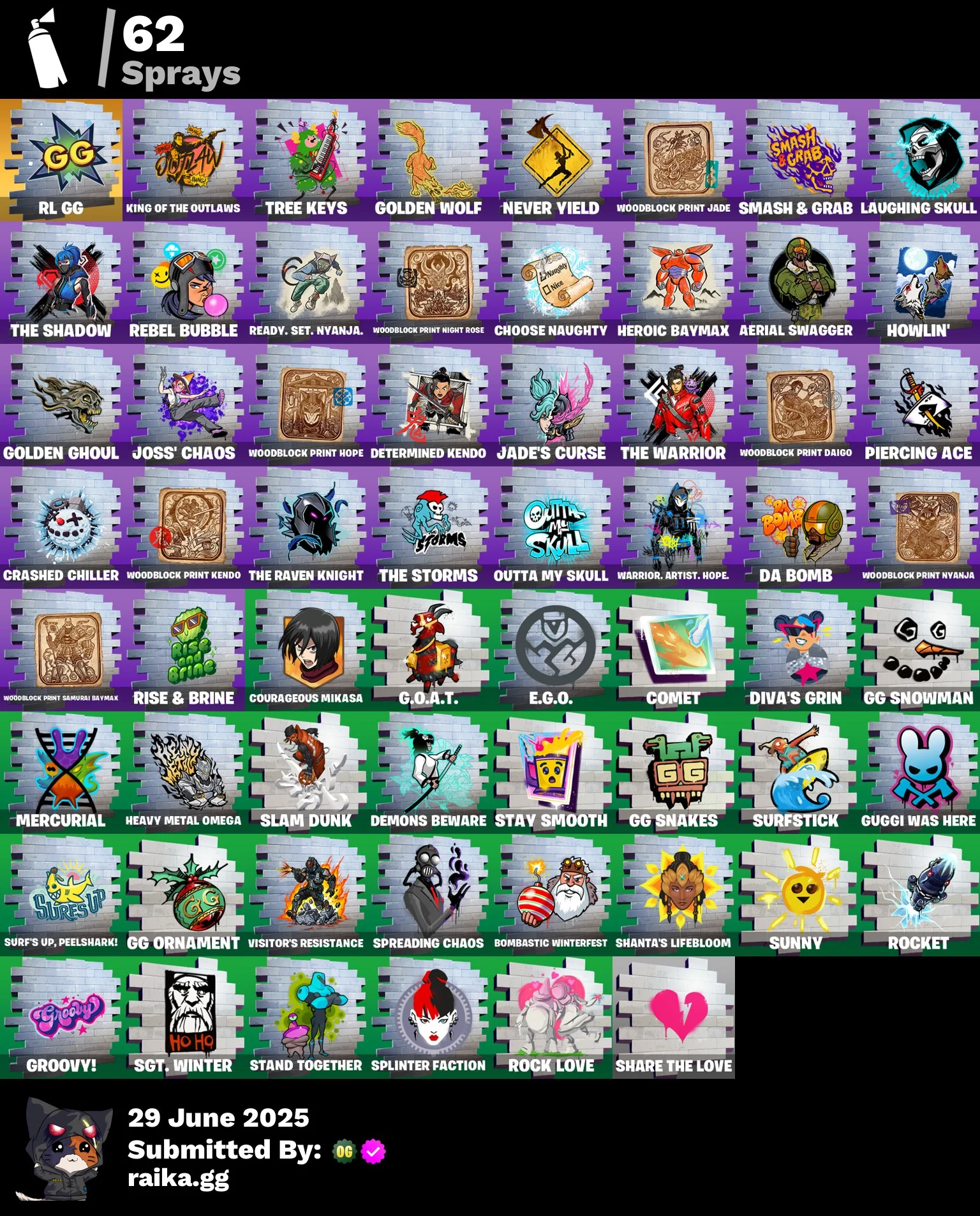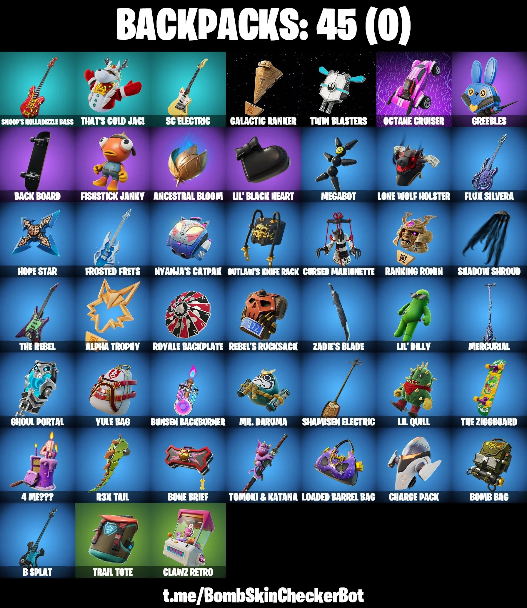 26 skins | Apprentice Evie | Santa Dogg | Kendo | Skull Commander | Joss | Dark Doggo | Valentina | Yulejacket | Outlaw Midas | Fletcher Kane | Nai@1