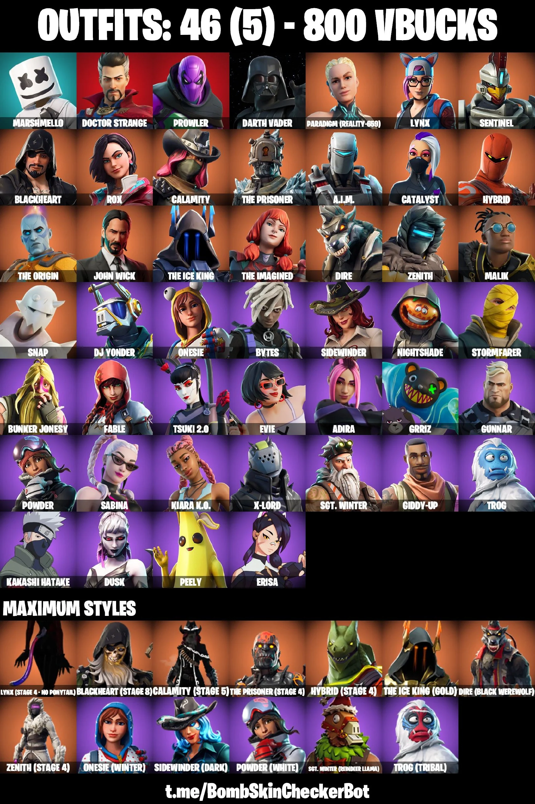 🔮46 Skins🔮 Take The Elf💎Darth Vader💎Kakashi Hatake💎Crowbar💎Erisa💎Peely💎Doctor Strange💎Dire💎DJ Yonder💎John Wick