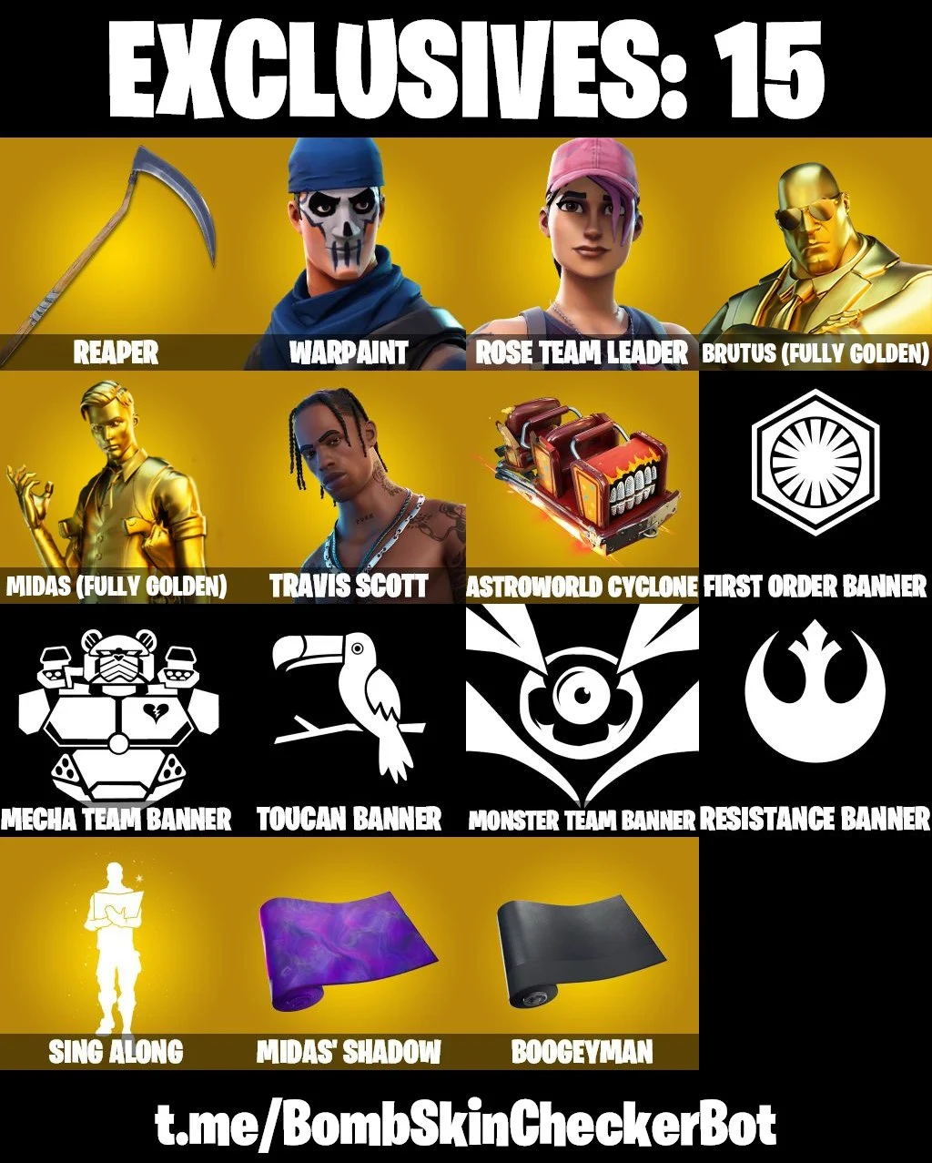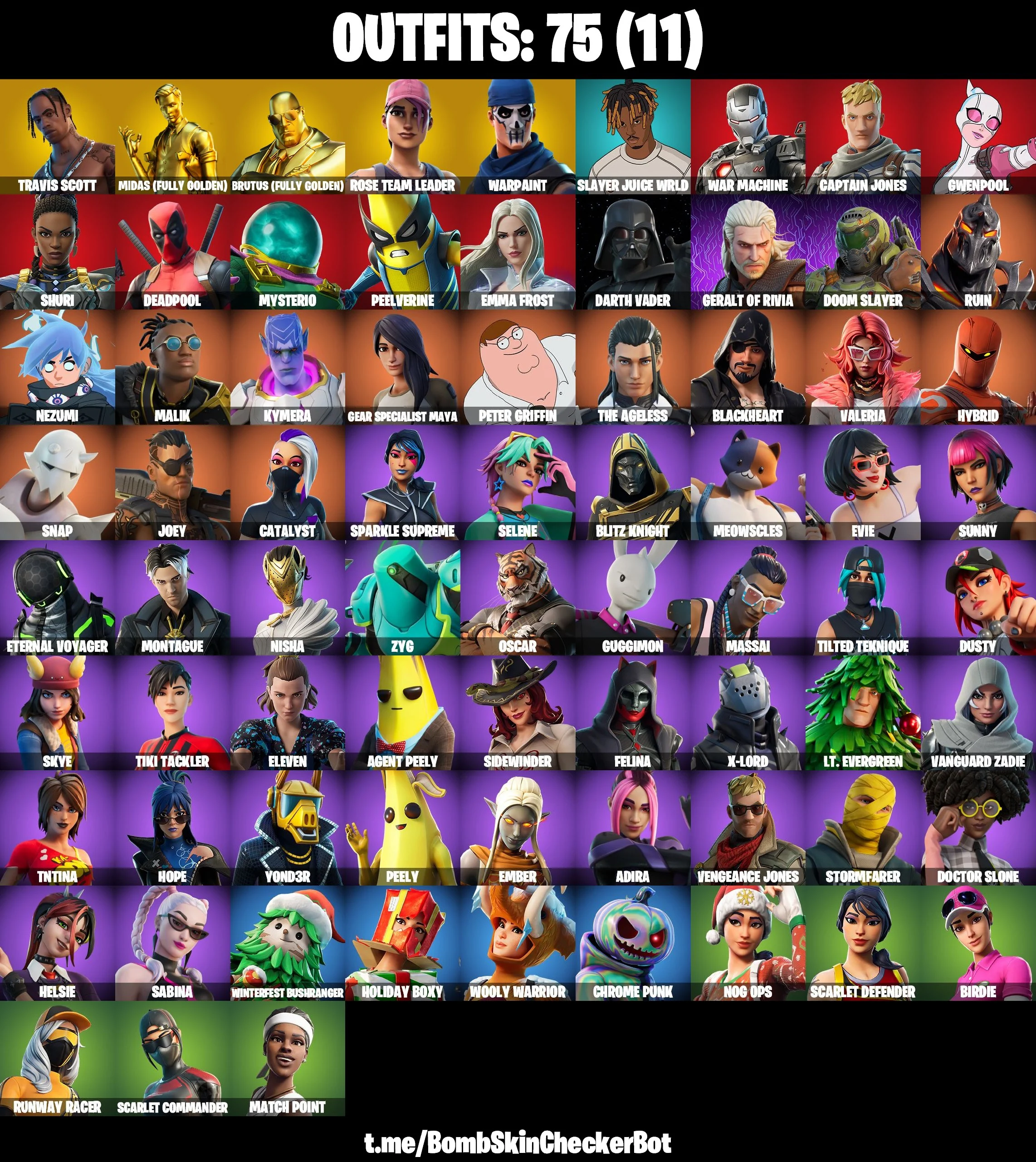 【 75 SKINS 】 TRAVIS SCOTT ❤️ GOLD MIDAS ❤️ WARPAINT ❤️ REAPER ❤️ (PC/PSN/XBOX)