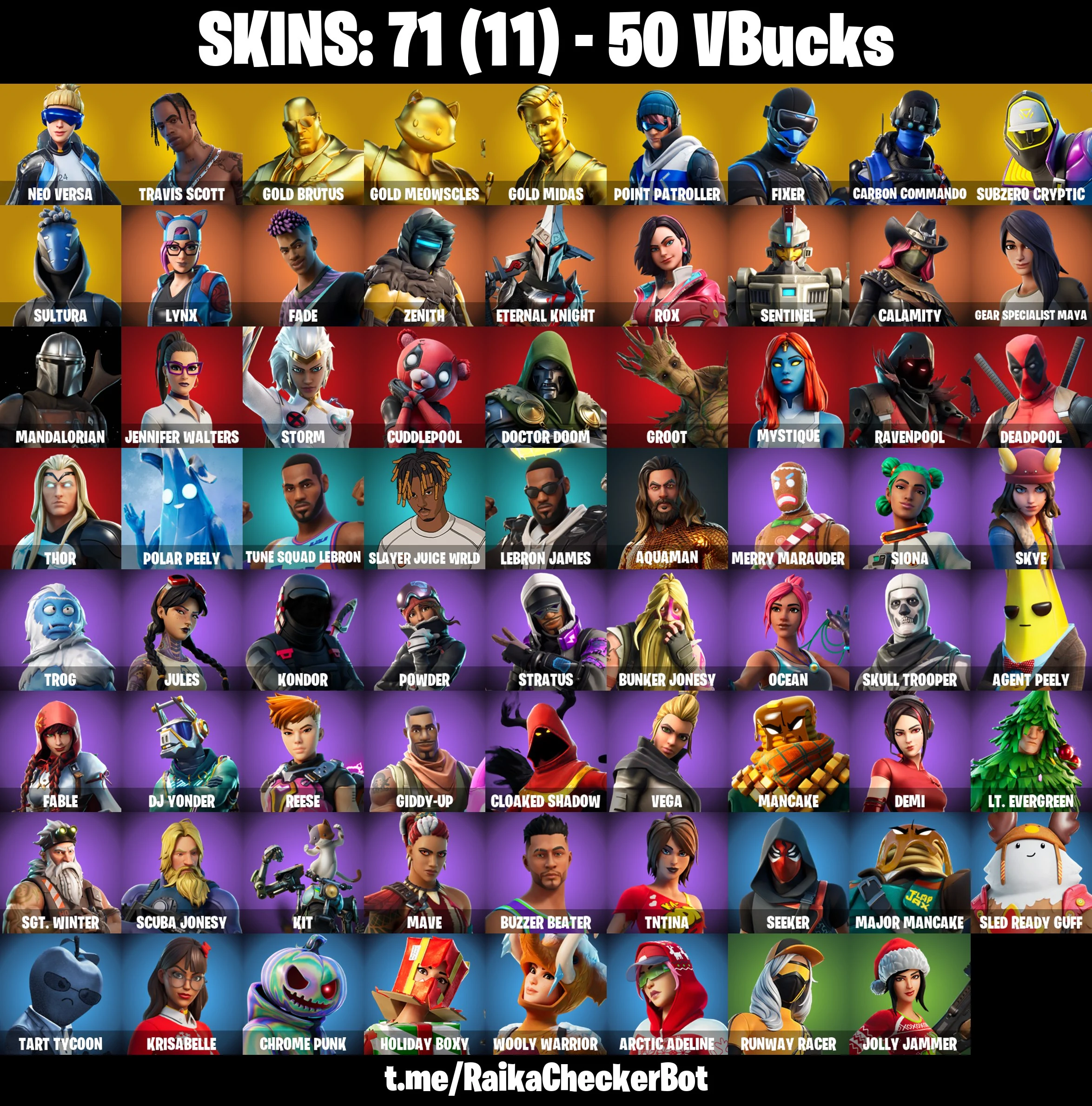 🎁✨ EXCLUSIVE LIMITED OFFER ✨🎁 71 SKINS 🌟 NEO VERSA 🌟 TRAVIS SCOTT 🌟 GOLD BRUTUS 🌟 GOLD MEOWSCLES 🌟 GOLD MIDAS 🌟 POINT PATROLLER 🌟 FIXER 🌟 CARBON COMMANDO 🌟 50 VB 🌟 PSN/XBOX/PC