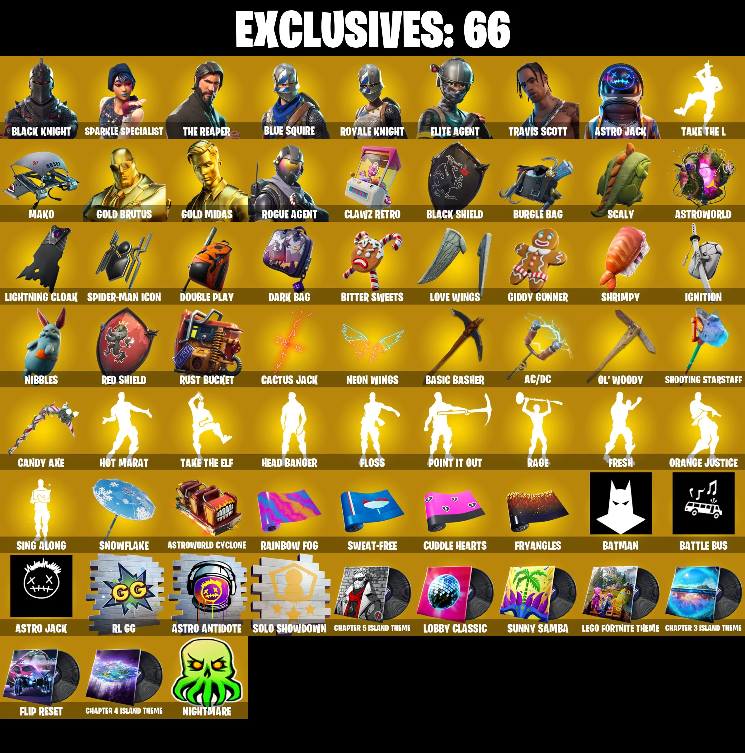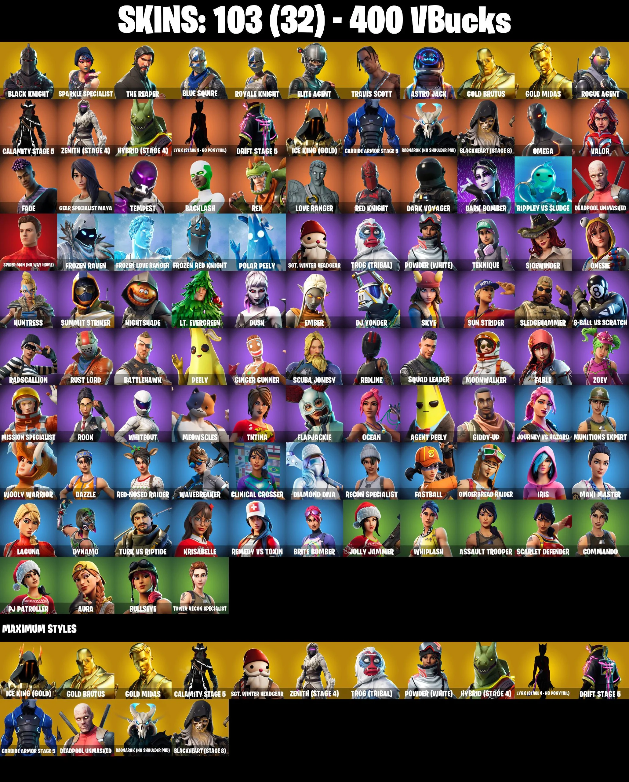 ๐ฅ๐๐ฅ EXCLUSIVE OFFER ๐ฅ๐๐ฅ 103 SKINS ๐ BLACK KNIGHT ๐ TRAVIS SCOTT ๐ THE REAPER ๐ BLUE SQUIRE ๐ ROYALE KNIGHT ๐ ELITE AGENT ๐ ASTRO JACK ๐ FRESH ๐ FLOSS ๐ TAKE THE L ๐ MAKO ๐ FULL ACCESS ๐ฎ PSN/XBOX/PC