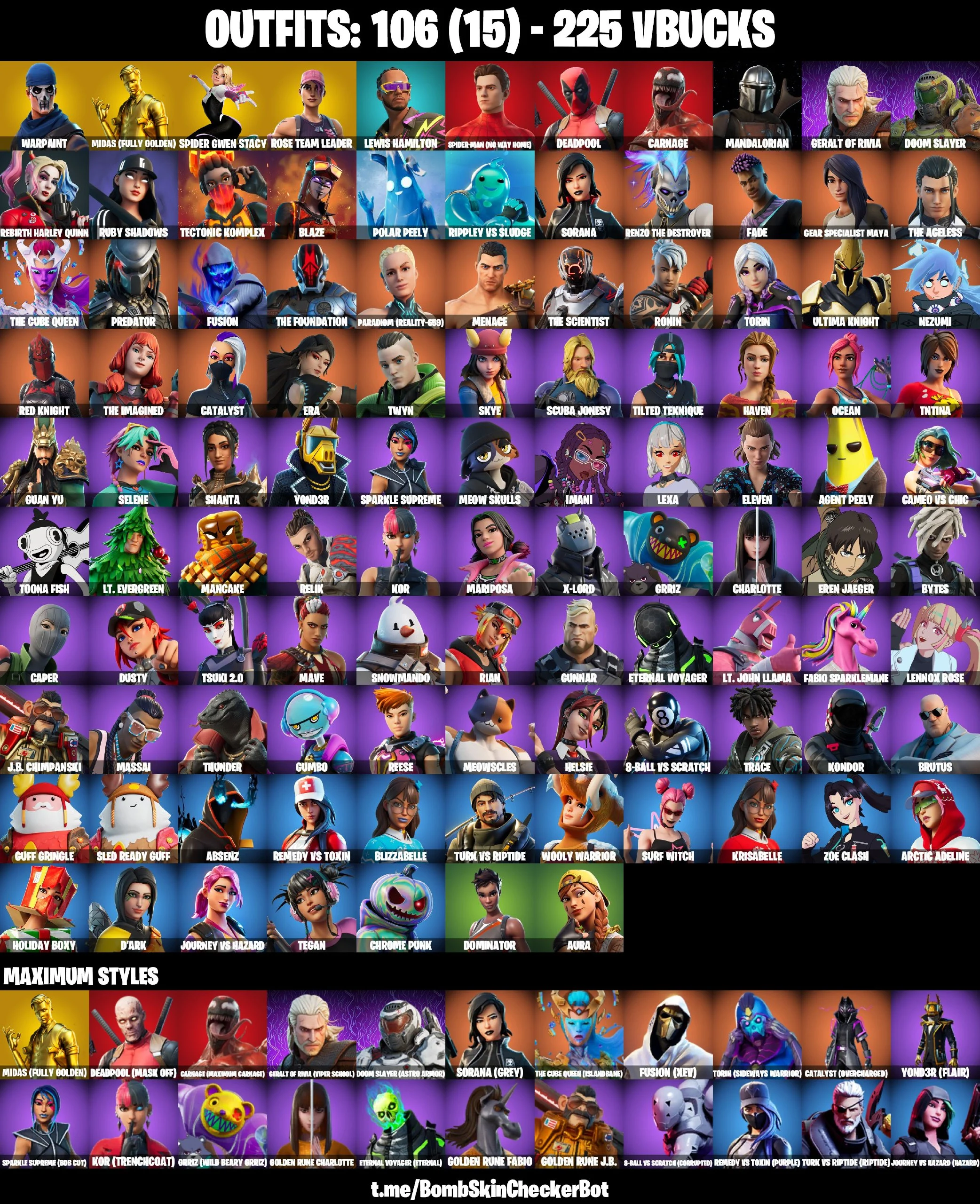 OG STW 106 Skins| Spidergwen Stacy, Midas (Golden), Red Knight, Luis Hamilton, Spider-Man (No Way Home)|Full Access