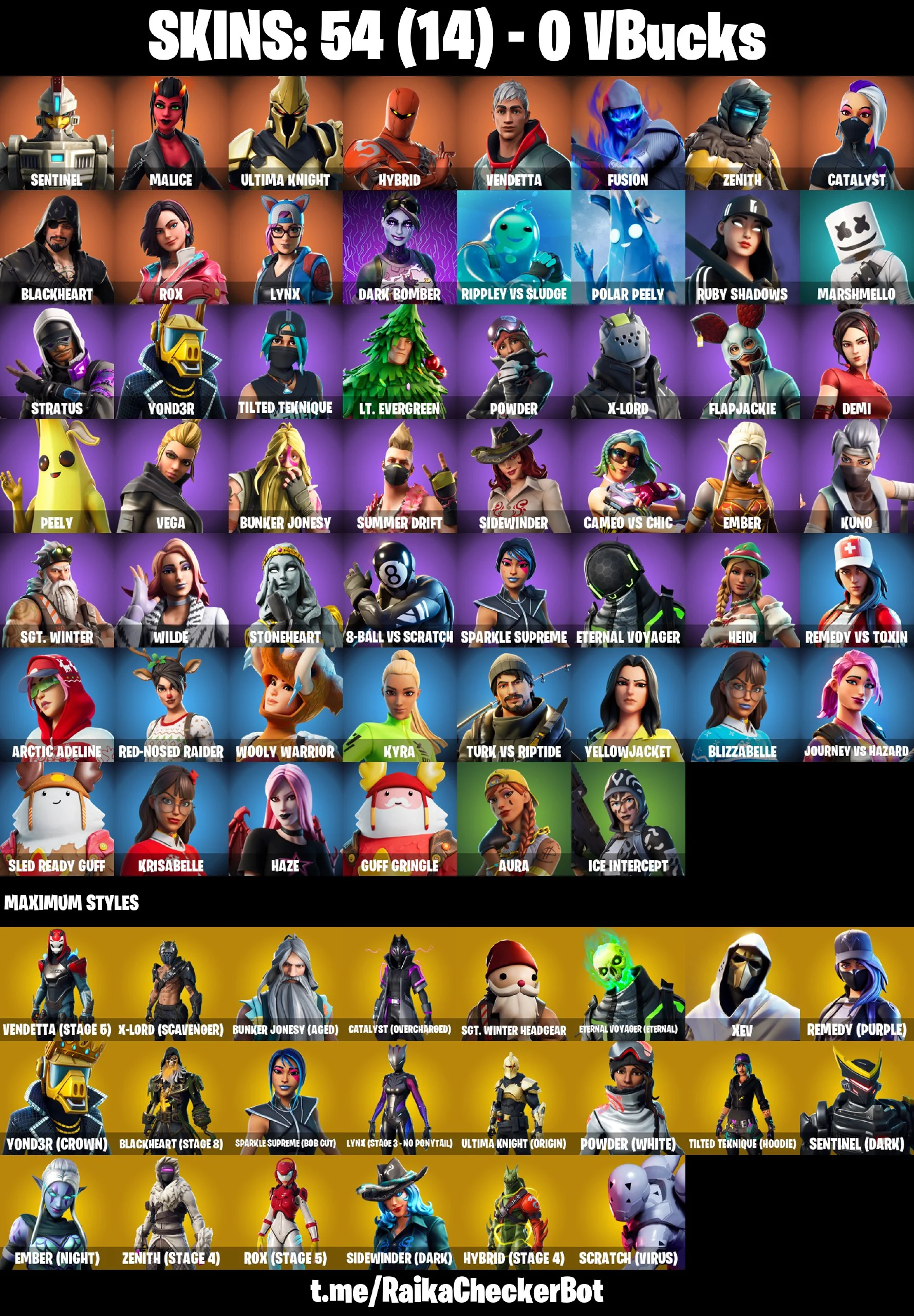 [PC] 🔥 54 ⭐️ skins 🔷 Sentinel ⭐️ Malice ⭐️ Ultima Knight ⭐️ Hybrid ⭐️ Vendetta ⭐️ Fusion ⭐️ Zenith ⭐️ Catalyst ⭐️ Blackheart ⭐️ Rox ⭐️ Lynx ⭐️ Sentinel ⭐️ Malice ⭐️ Ultima Knight ⭐️ Hybrid ⭐️