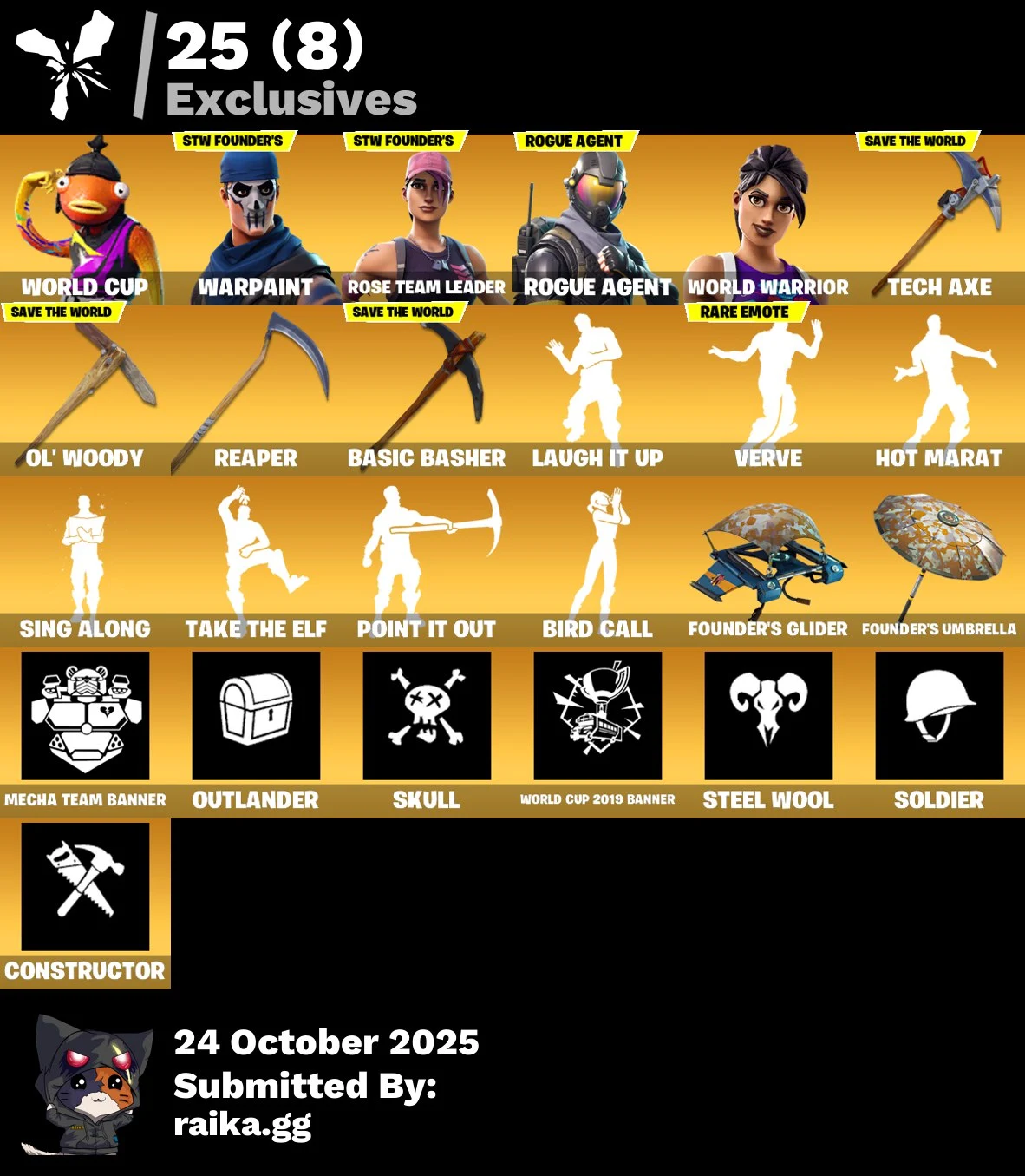 [PC | PSN | XBOX ] 245 skins | Og SAVE The World | WORLD CUP | Rogue Agent | World Warrior | Sentinel | Galaxy Scout | Wild Card | Rox | Hime | Musha | A.I.M. | Hybrid | 400 VB