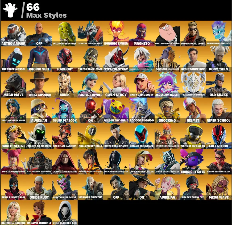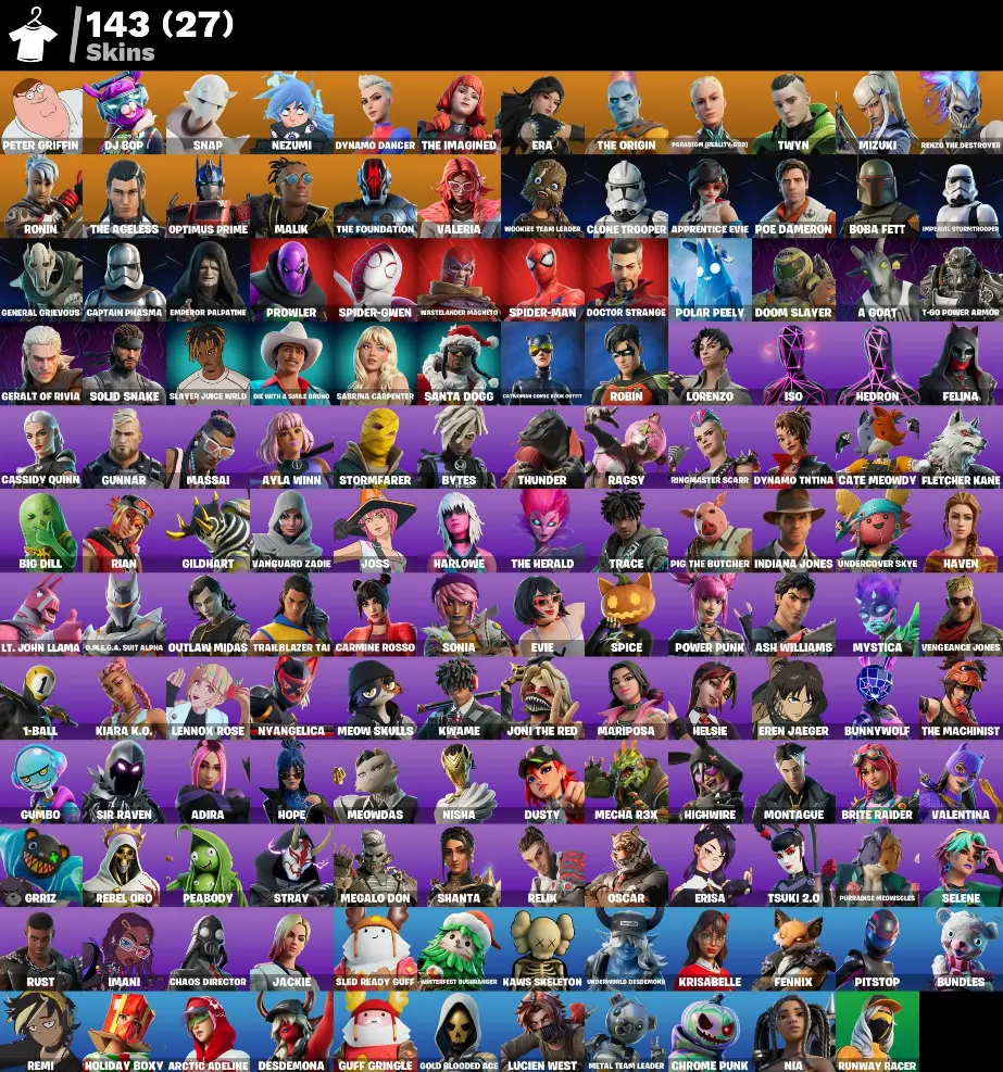 (PC PSN XBOX ) 143 skins | Peter Griffin | DJ Bop | Snap | Nezumi | Dynamo Dancer | The Imagined | Era | The Origin | Paradigm (Reality-659) | Twyn | Mizuki