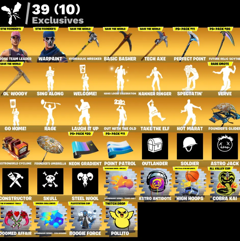 (PC PSN XBOX) 201 skins | OG STW | The Cube Queen | The Imagined | The Foundation | The Scientist | Kymera | Midas | Joey | Eternal Knight | Spire Assassin | 1000 VB / LARA CROFT / AANG