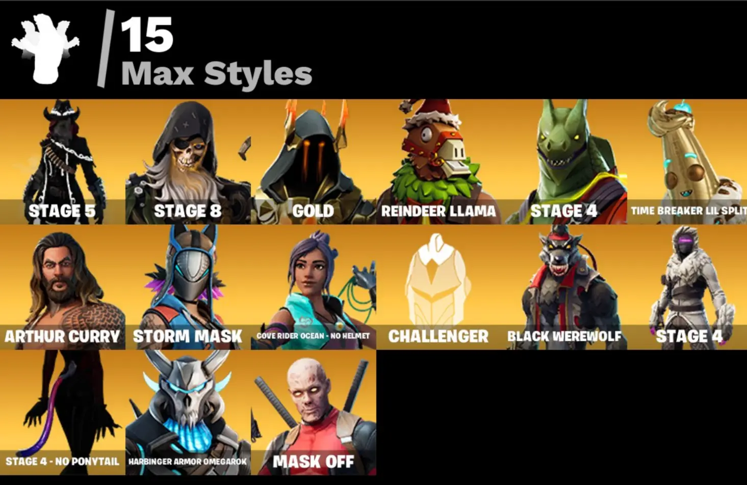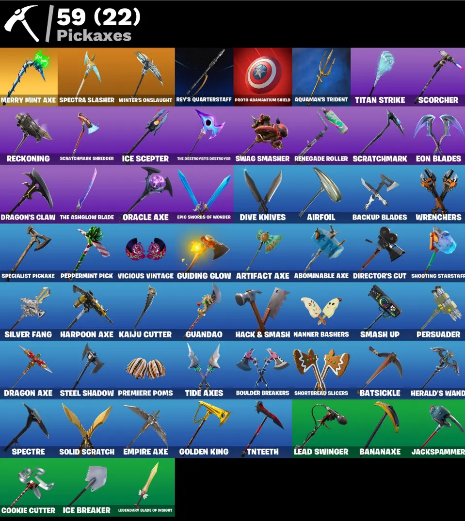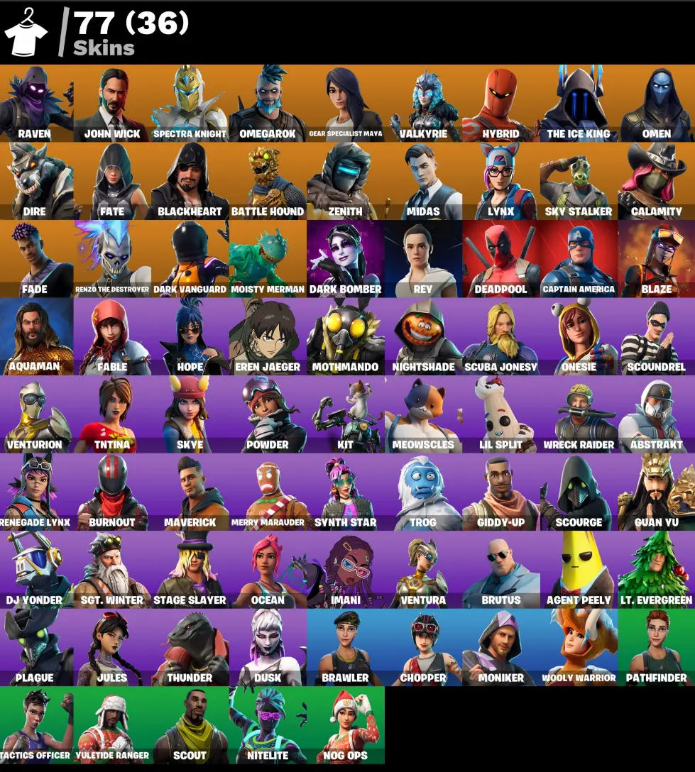 (PC PSN XBOX) 77 skins | MERRY MINT AXE / DARK BOMBER / Calamity | Dark Vanguard | Raven | Midas | Sky Stalker | Valkyrie | Fade | Dire | Omen | Renzo the Destroyer | Omegarok