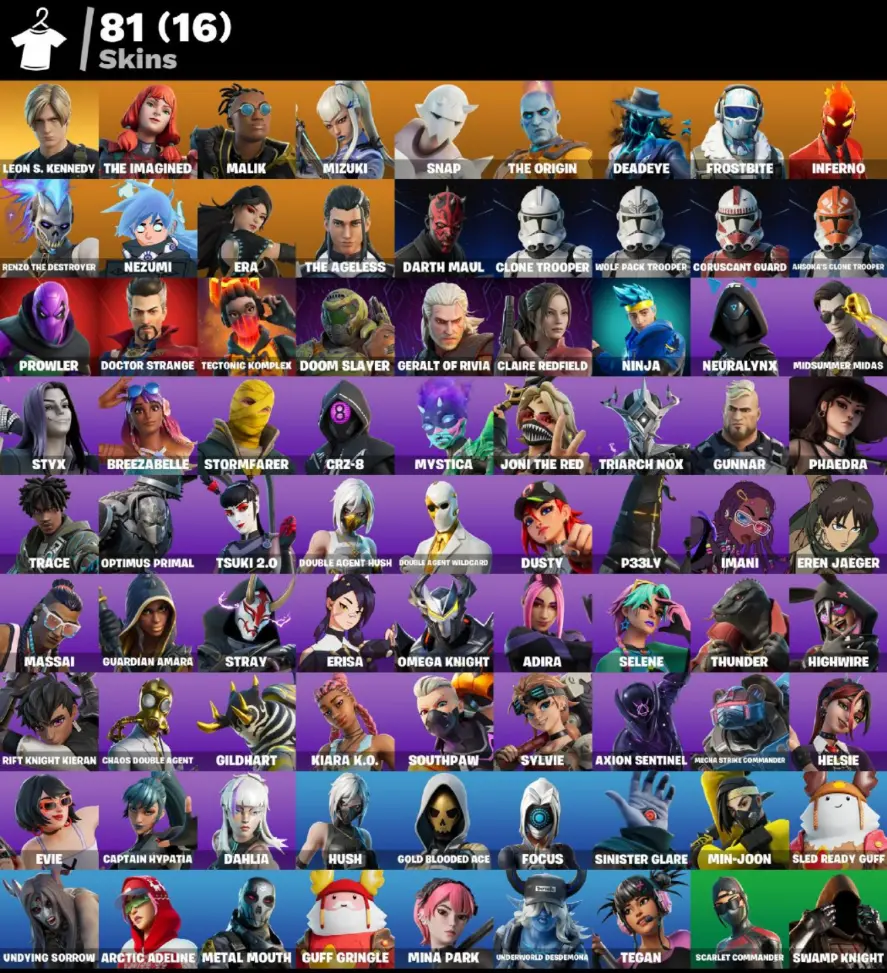 (PC PSN XBOX) 81 skins | Leon S. Kennedy | The Imagined | Malik | Mizuki | Snap | The Origin | Deadeye | Frostbite | Inferno | Renzo the Destroyer | Nezumi | 200 VB