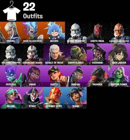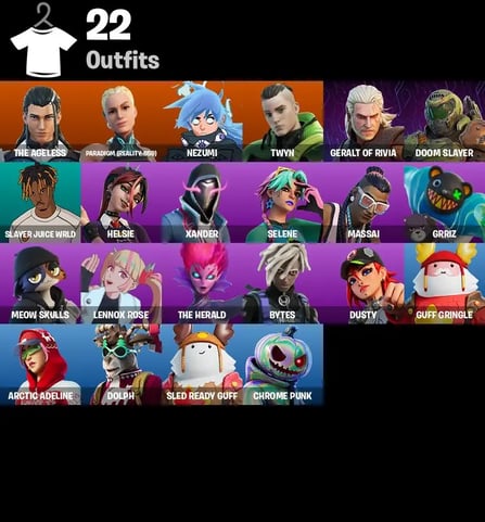 【PC/NS/XBOX】 17 SKINS 🔥 SLAYER JUICE WRLD 🔥 GUNSLINGER OUTLAW MIDAS 🔥 DILLINGER THE GHERK 🔥 EXPLORER EMILIE 🔥 GHOUL TROOPER 🔥 KEISHA CROSS 🔥 DUPLI-KATE 🔥 VALENTINA 🔥 FLETCHER KANE 🔥 CASSIDY QUINN 🔥 JOSS 🔥 ARCTIC ADELINE 🔥 HOLIDAY BOXY 🔥 W