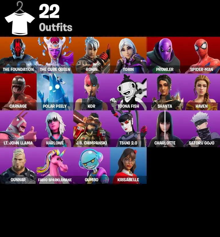 【PC/NS/XBOX/PSN】 22 skins 🔥 Torin 🔥 The Cube Queen 🔥 Ronin 🔥 The Foundation 🔥 Carnage 🔥 Spider-Man 🔥 Prowler 🔥 Polar Peely 🔥 Haven 🔥 350 VB