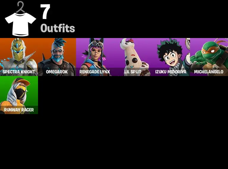 【PC/NS/XBOX/PSN】  7 SKINS 🔥 SPECTRA KNIGHT 🔥 OMEGAROK 🔥 MICHELANGELO 🔥 LIL SPLIT 🔥 IZUKU MIDORIYA 🔥 RENEGADE LYNX 🔥 RUNWAY RACER 🔥 250 VB