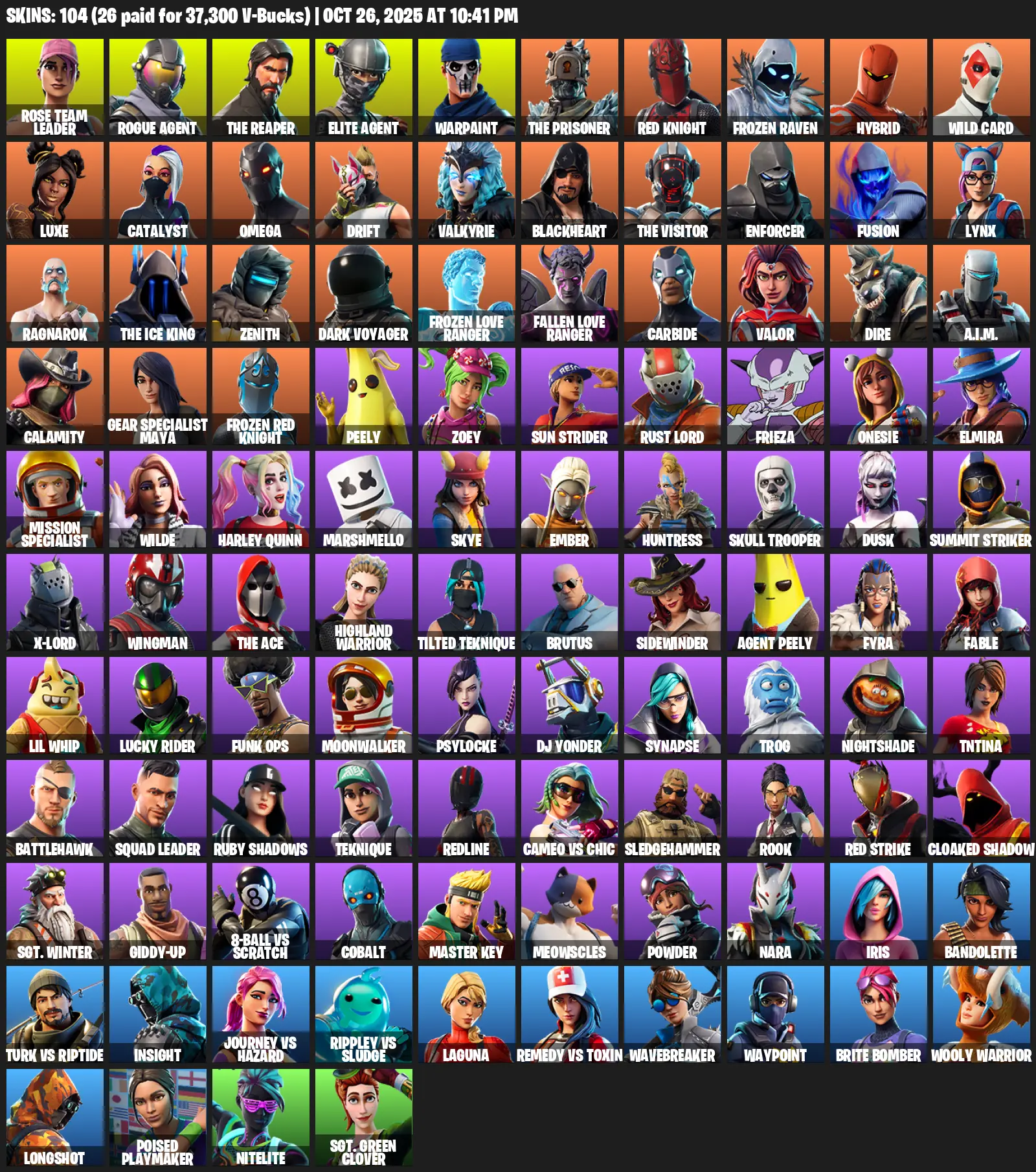 [PC/PSN] | 104 skins | 600 V-bucks | Take The L | OG STW | The Reaper | Elite Agent | Omega | Rose Team Leader | Rogue Agent | Warpaint | S4G