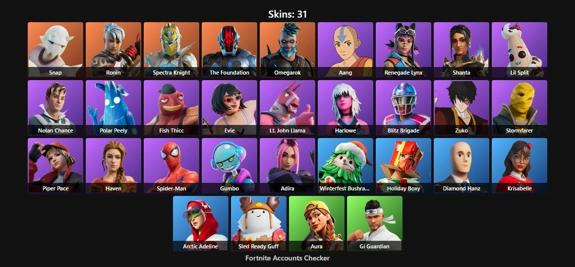 PC/PSN 31 Skins⚡ | Snap | Ronin | Spectra Knight | The Foundation | Omegarok | Aang | Renegade Lynx | Shanta | Lil Split | Nolan Chance | Polar Peely