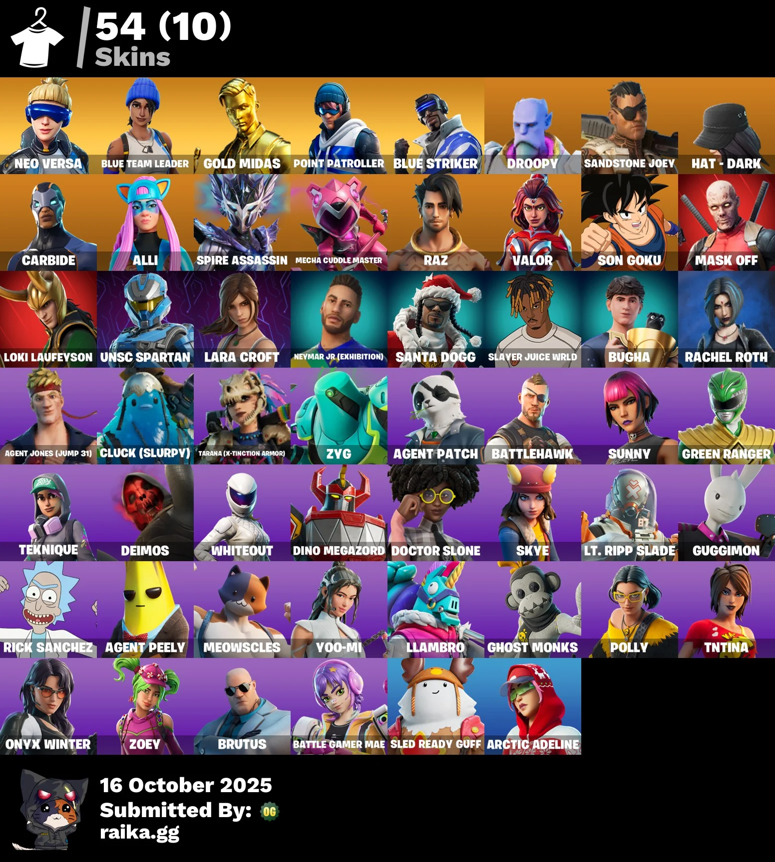[PC/PSN] 54 skins | Lara Croft | Son Goku | Laugh It Up | Neo Versa | Blue Team Leader | Gold Midas lai431