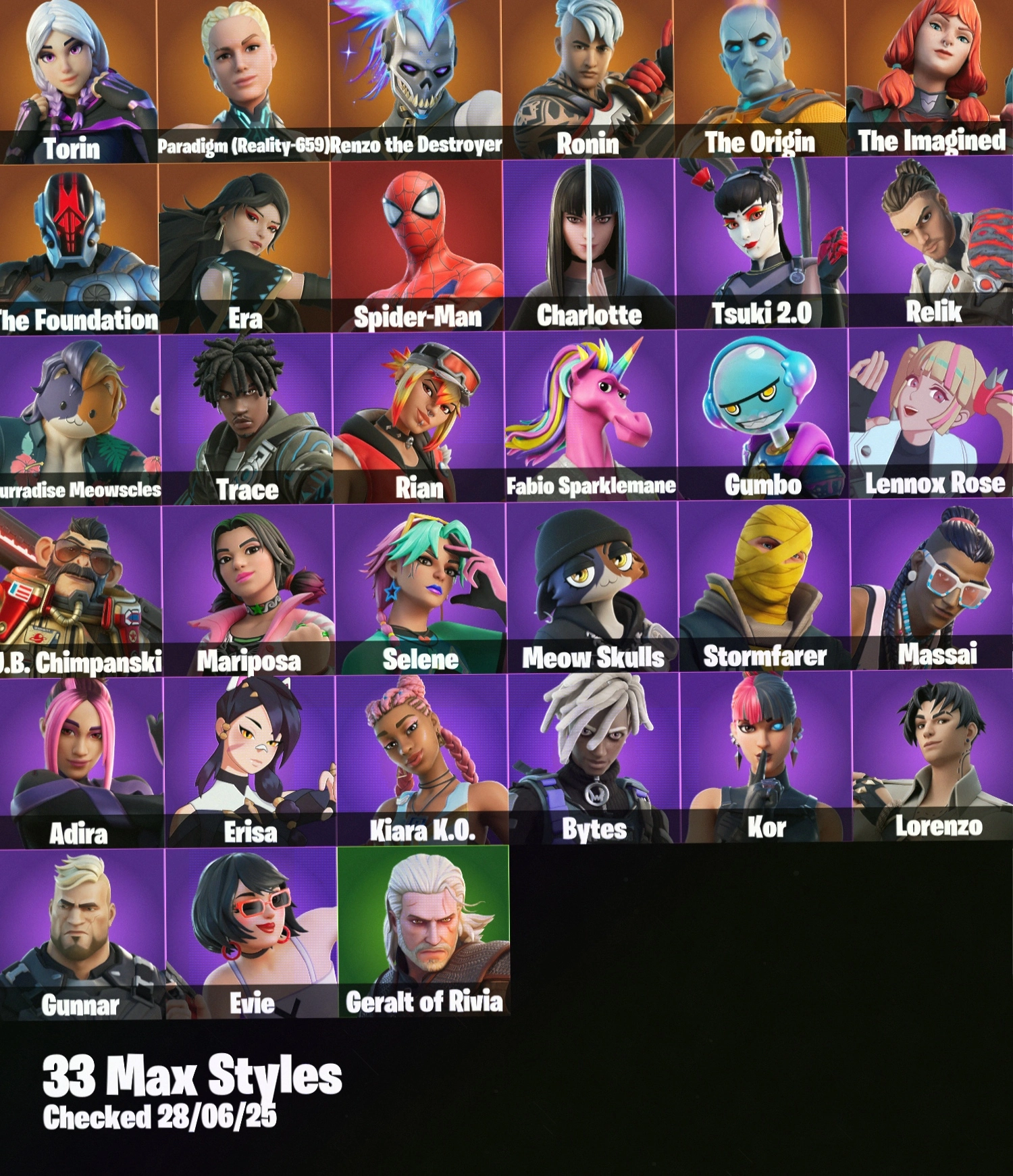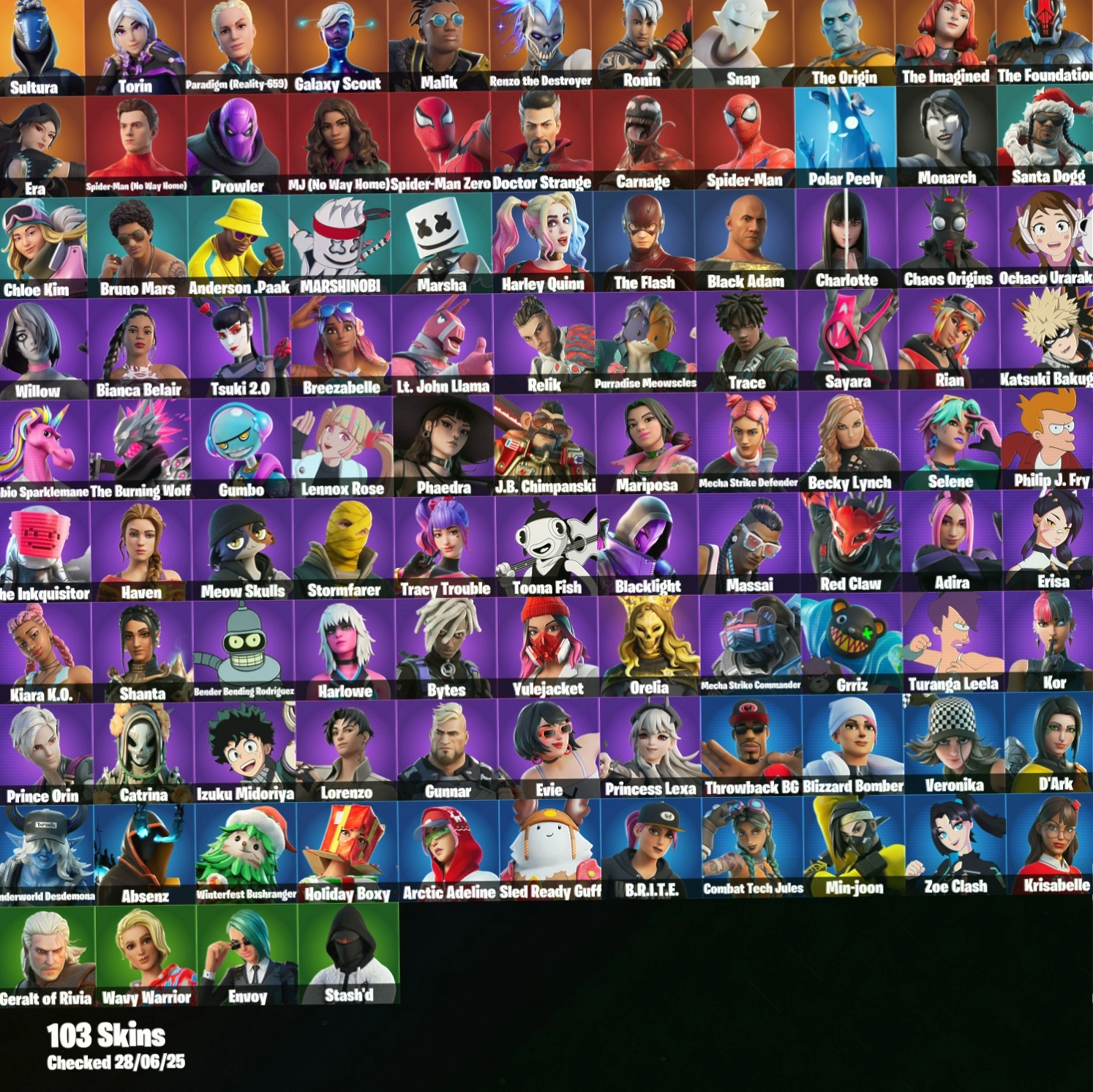 [PC/PSN/XBOX] 103 Skins+Sultura+Snowtooth+Cymitar+Charlotte+Chaos Origins+Ochaco Uraraka+Geralt of Rivia+Willow+500 VB #ITEM-165504