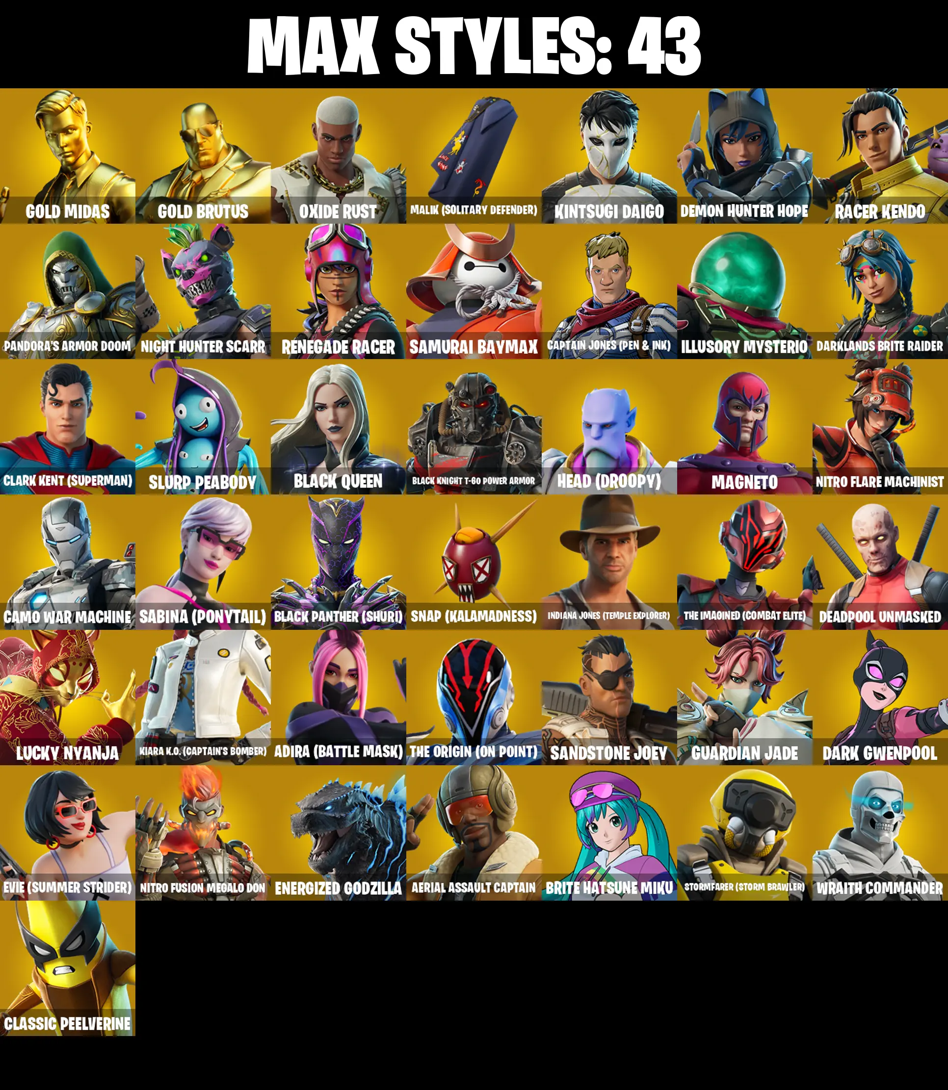 PC/PSN/XBOX ♨️114 skins ✨ Deadpool ✨ Gold Midas ✨ Gold Brutus ✨ Jabba Switchway ✨ Rick Sanchez ✨ Doctor Strange ✨ Darth Vader ✨ Sing Along ✨ #B850