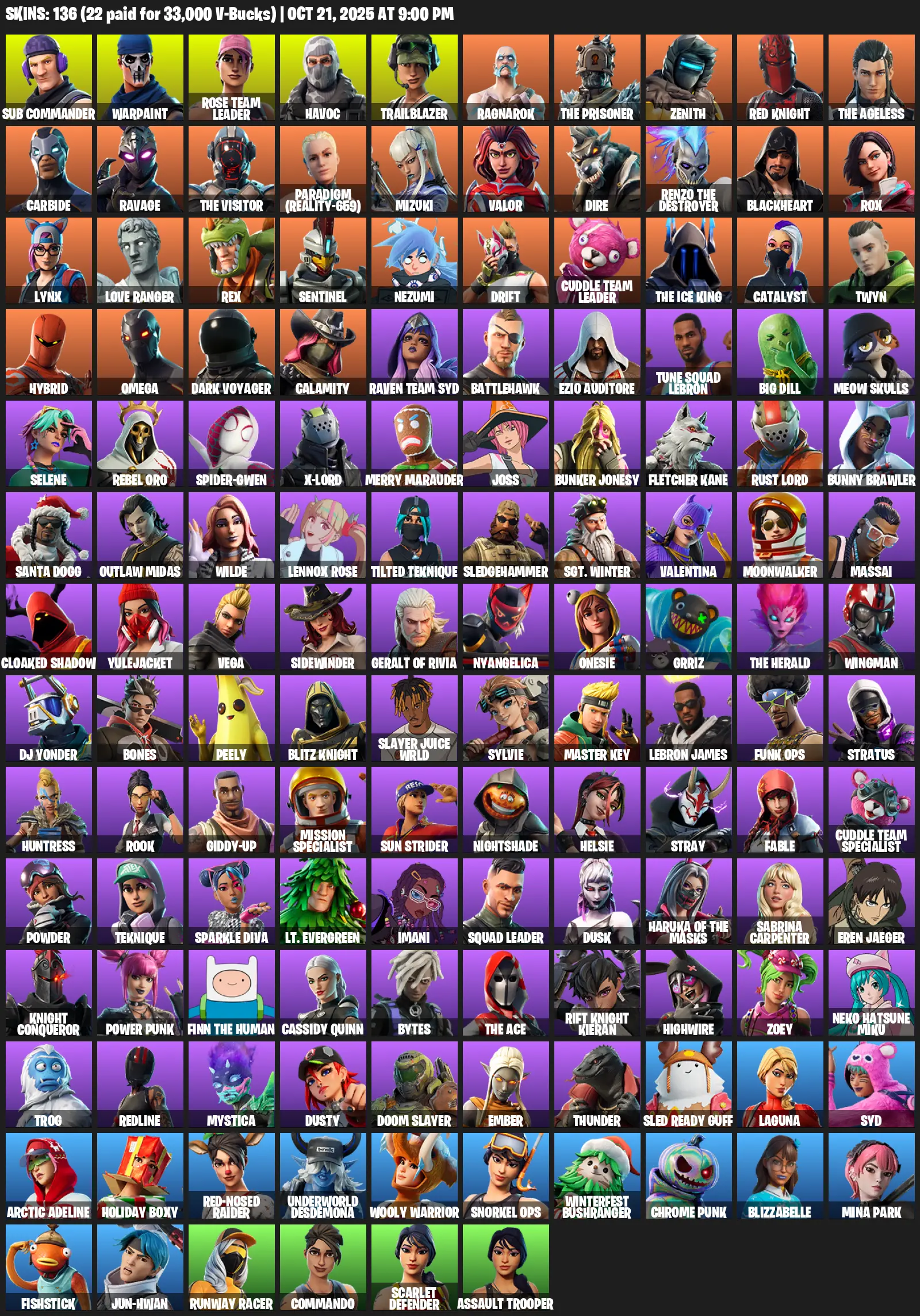 ๐จ [PC/PSN/XBOX] ๐ 136 skins | The Ageless , The Ice King , Catalyst , Omega , Calamity , Drift , The Herald , Fusion , The Scientist | ๐ 200 VBUCKS | โ๏ธ Changeable Email Now