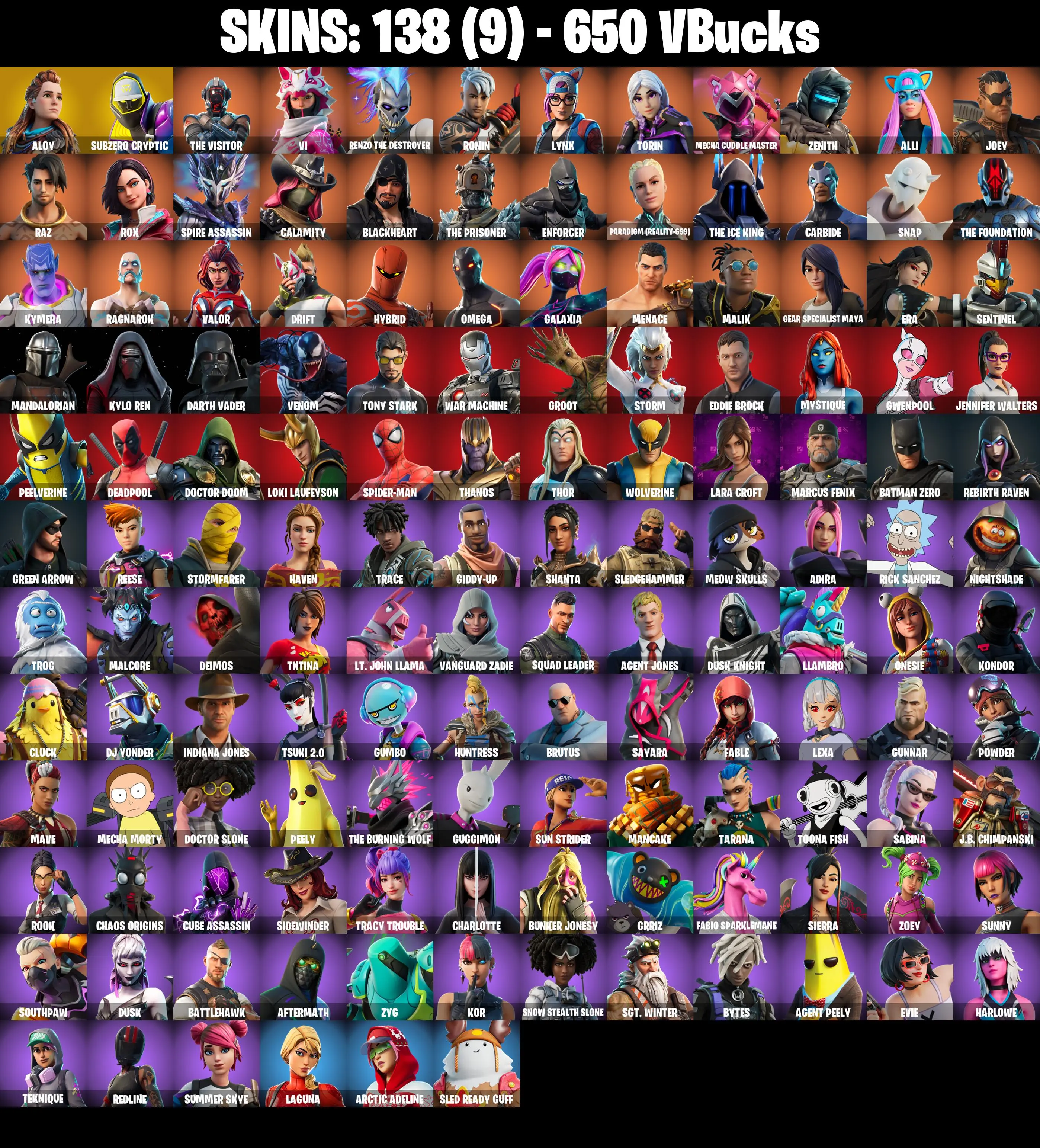 PC/PSN/XBOX ♨️138 skins ✨ Lara Croft ✨ Deadpool ✨ Eddie Brock ✨ Galaxia ✨ Omega ✨ Orange Justice ✨ Drift ✨ Carbide ✨ Ragnarok ✨ The Ice King ✨ #B734