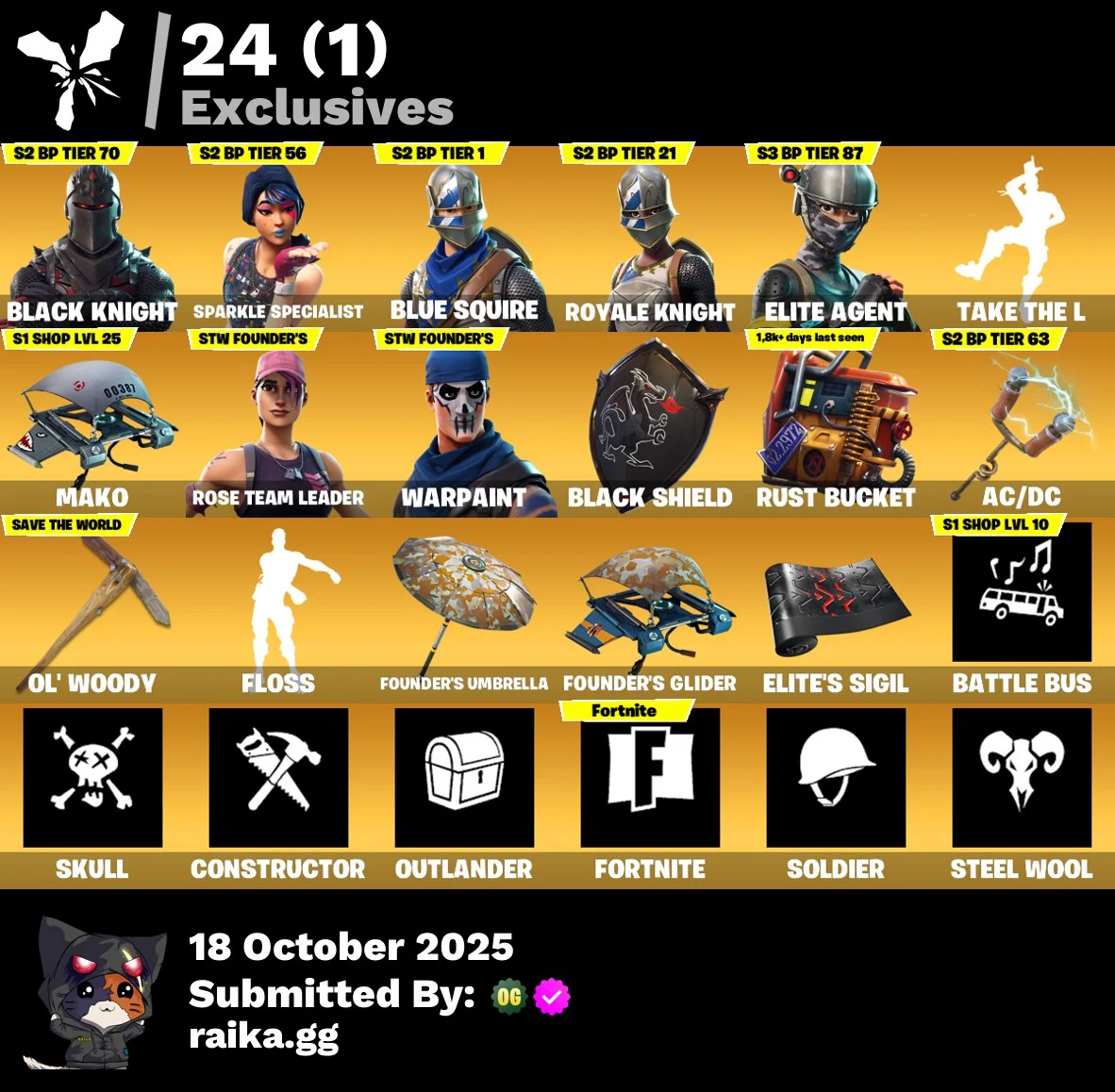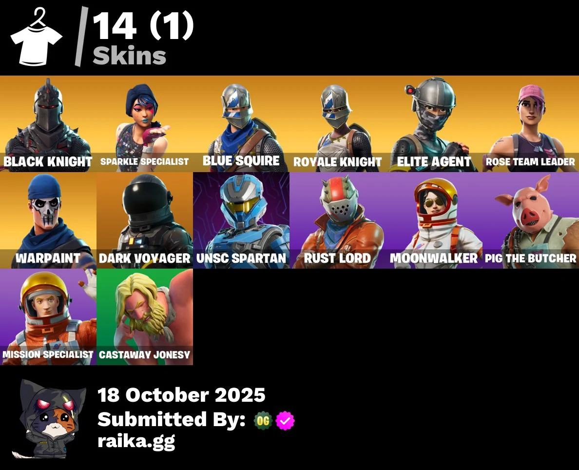 [PC/PSN/XBOX] 14 skins | OG STW | Black Knight | Sparkle Specialist | Blue Squire | Royale Knight | Elite Agent | Dark Voyager | UNSC Spartan | Rust Lord | 100 VB
