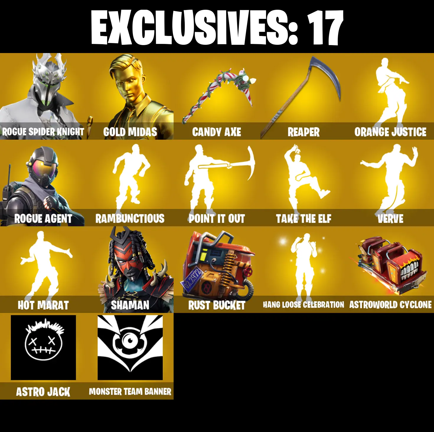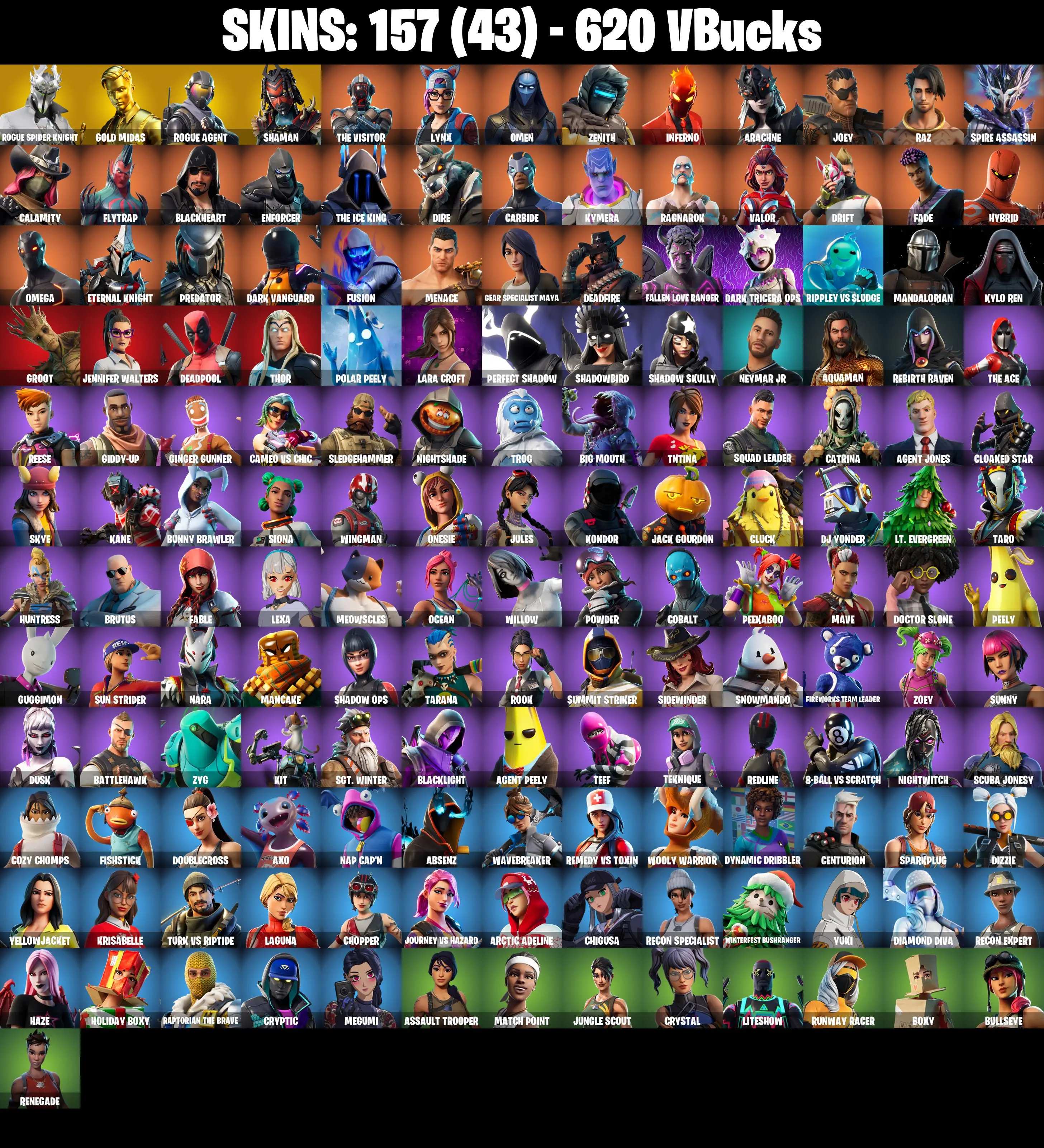PC/PSN/XBOX ♨️157 skins ✨ Rogue Spider Knight ✨ Lara Croft ✨ Deadpool ✨ Gold Midas ✨ Candy Axe ✨ Reaper ✨ Omega ✨ Orange Justice ✨ Rogue Agent ✨ #B721