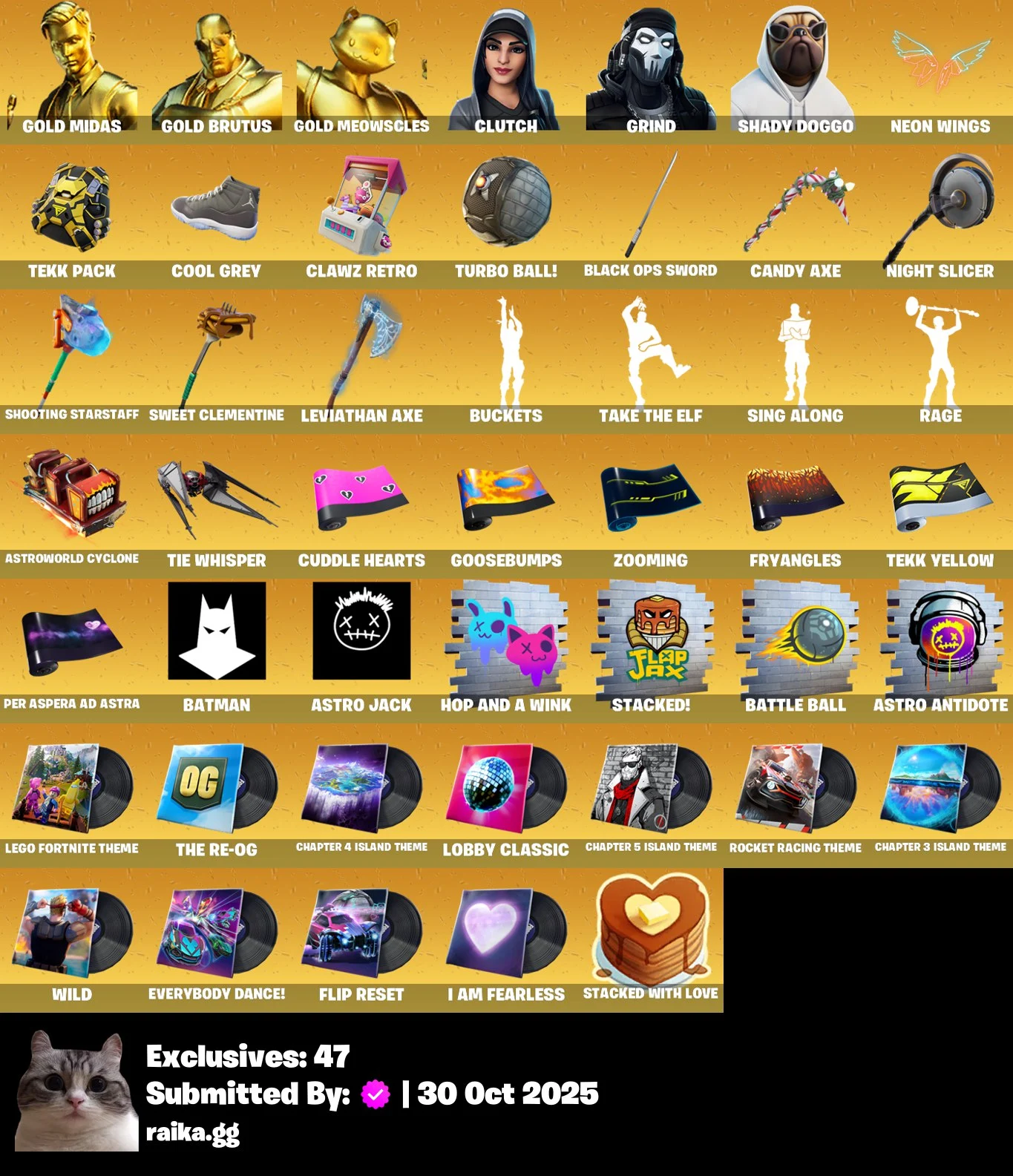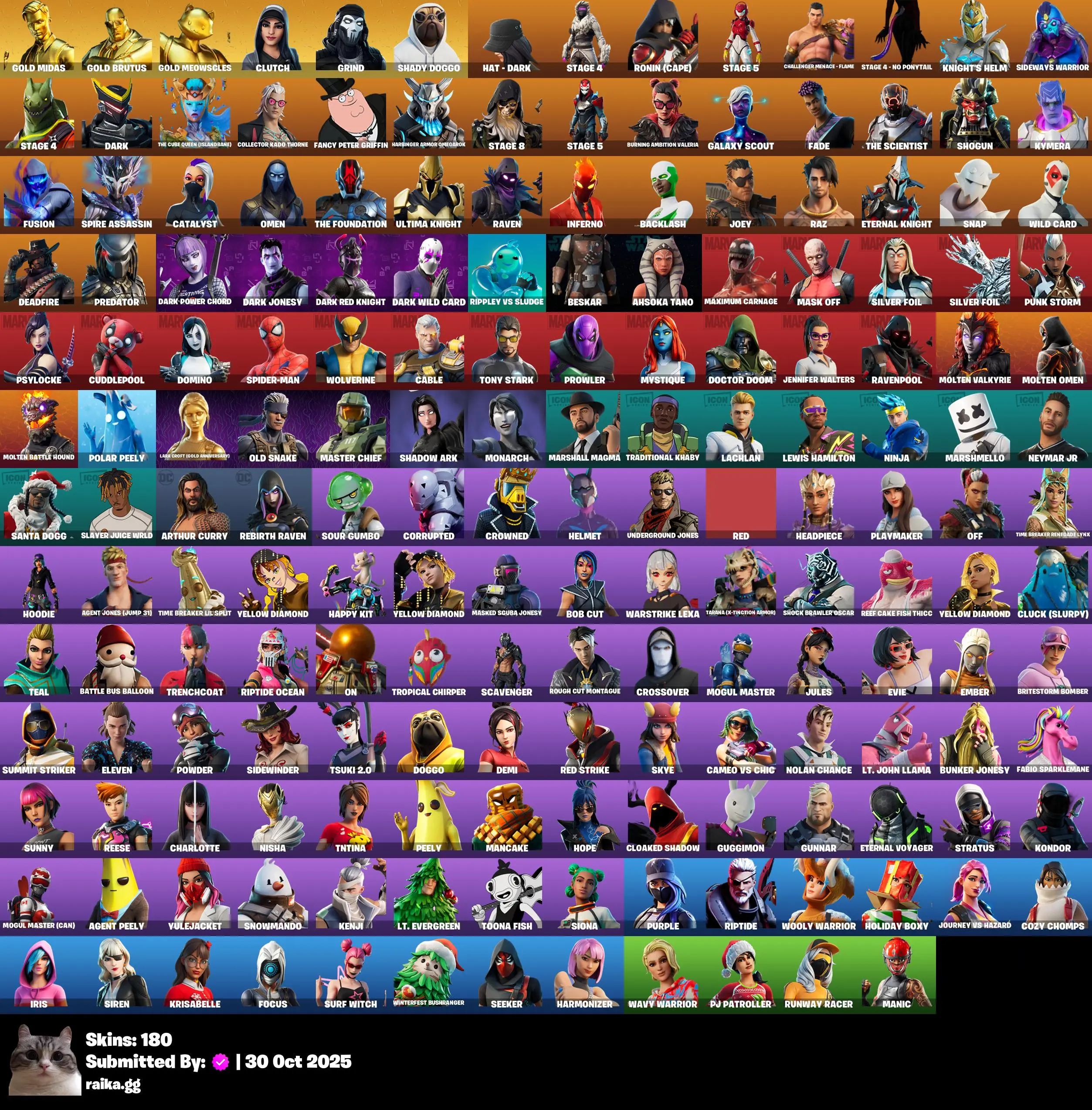 [PC/PSN/XBOX] 180 skins | Master Chief | Gold Midas | Gold Brutus | Gold Meowscles | Clutch | Grind | Shady Doggo | HAT ⸱ DARK | Stage 4 | Ronin (Cape