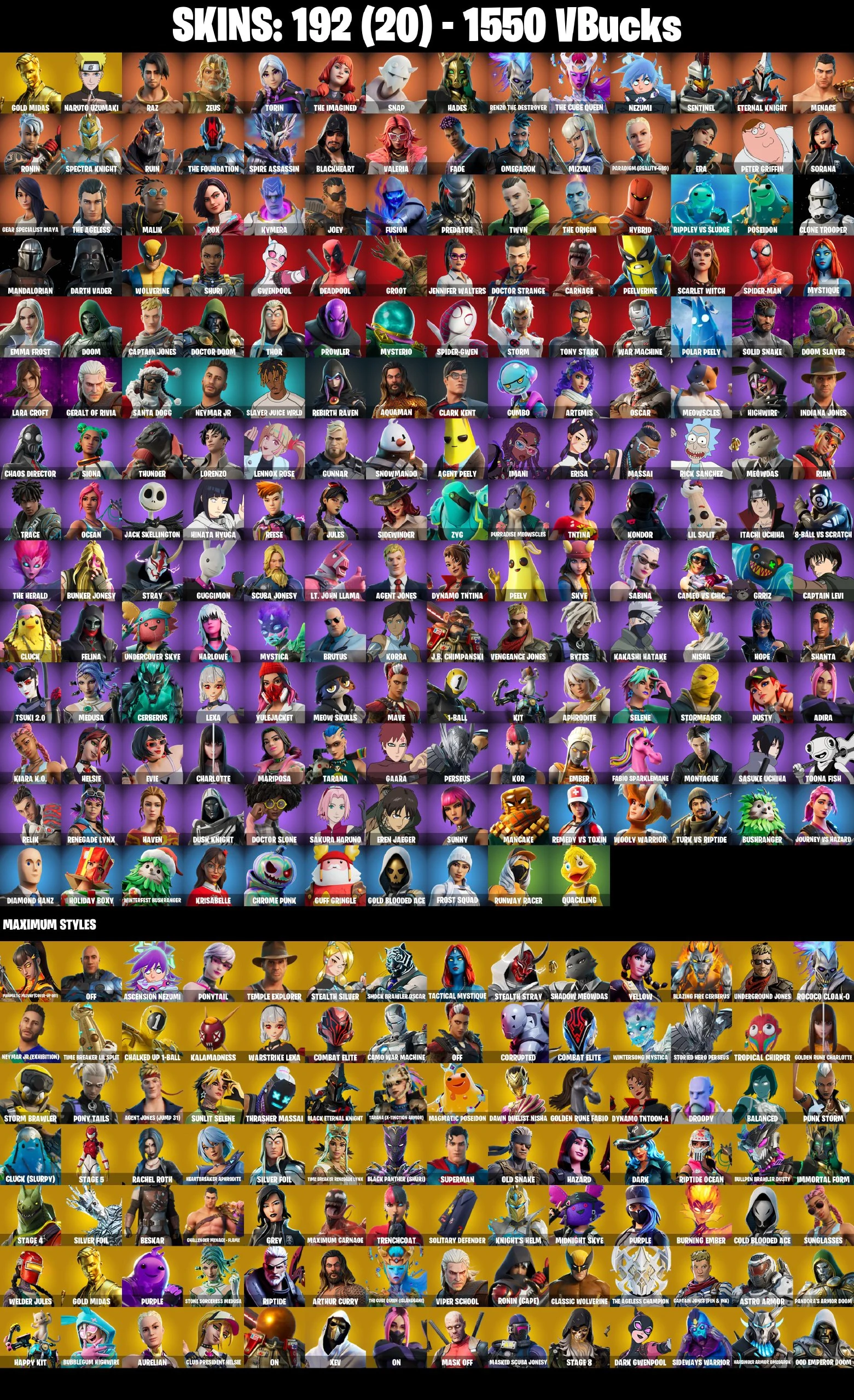 [PC/PSN/XBOX]  192 SKINS ⚡️ Gold Midas ⚡️ Naruto Uzumaki ⚡️ Raz ⚡️ Zeus ⚡️ Torin ⚡️ The Imagined ⚡️ Snap ⚡️ Hades ⚡️ Renzo the Destroyer ⚡️1550 VB