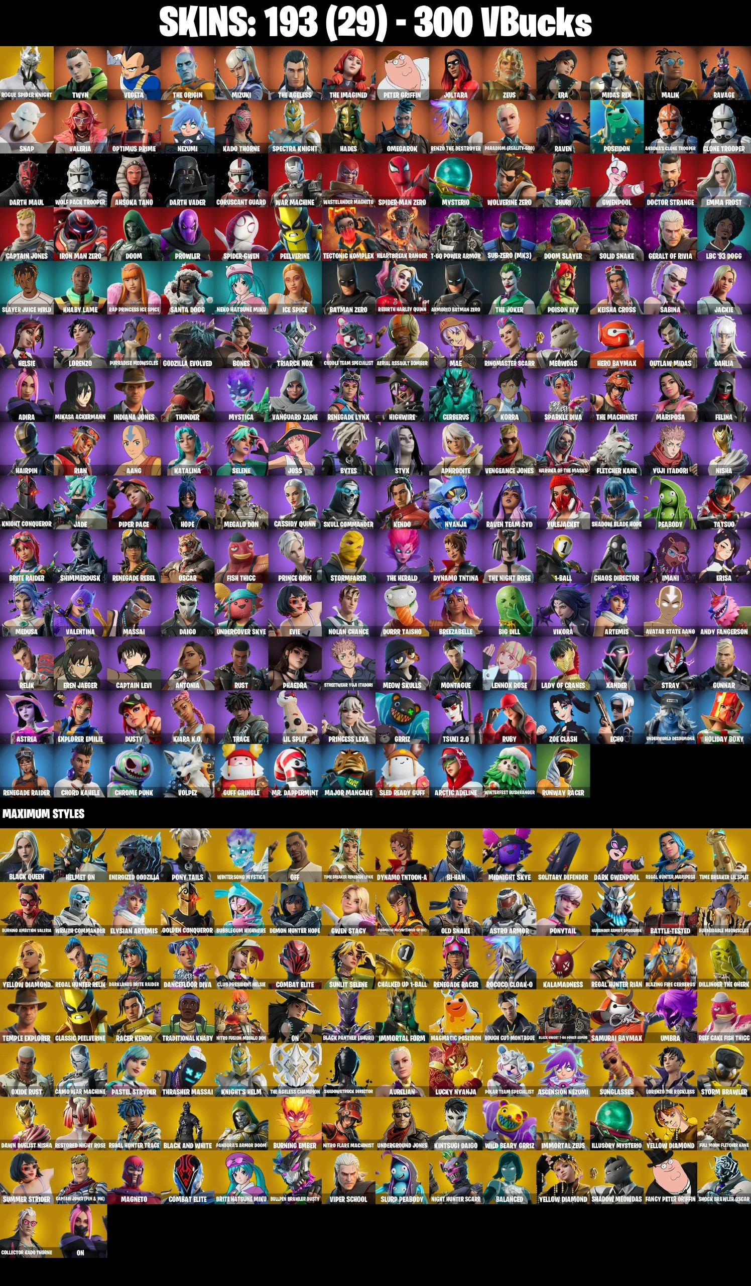 [PC/PSN/XBOX] 193 SKINS ⚡️ Renegade Raider ⚡️ Rogue Spider Knight ⚡️ Twyn ⚡️ Vegeta ⚡️ The Origin ⚡️ Mizuki ⚡️ The Ageless ⚡️ The Imagined⚡️300 VB