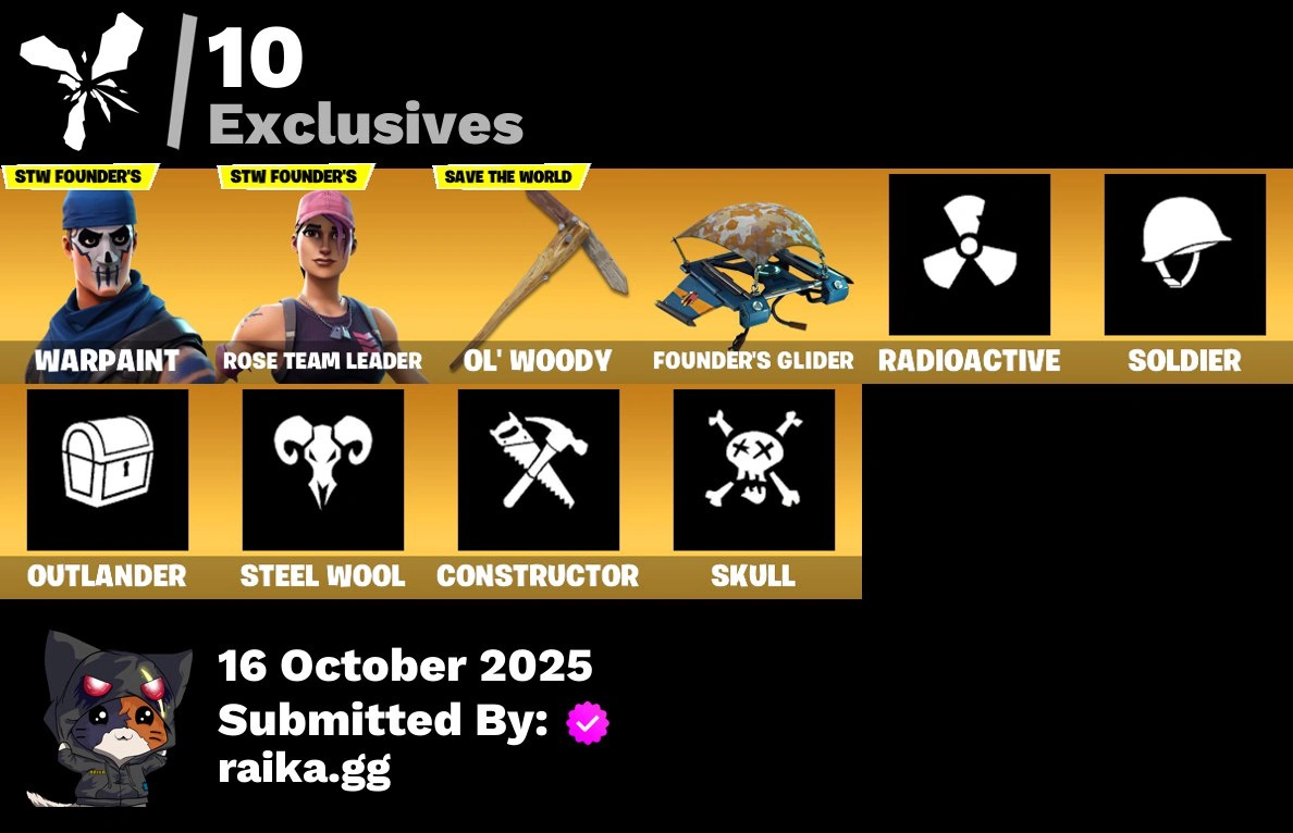 [PC/PSN/XBOX] 2 skins | OG STW | Skirmish | Pursuit | Bobo | Outlaw's Knife Rack | Clawz Retro | Ol' Woody | Smash O'-Lantern | Outlaw's Whipknives | Rose Glow | 200 VB